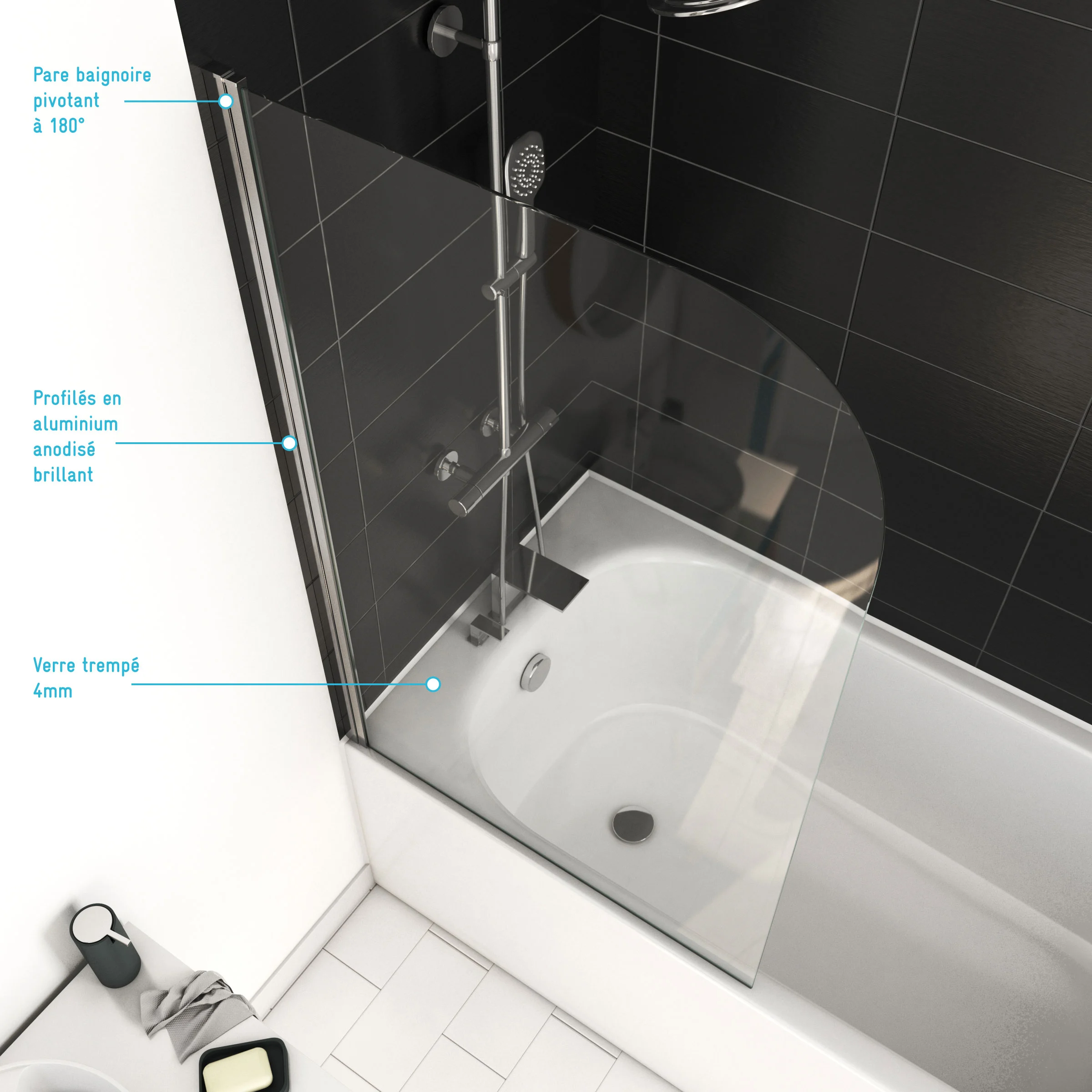 Pare baignoire avec paroi de douche fixe Points forts 1., Pare baignoire 120x140cm,écran de baignoire 2 volets pivotants et pliants, Pivotant à 180°;avec paroi de douche fixe 75x140cm., 2., 6mm verre de sécurité et anticalcaire,2 faces du verre avec traitement NANO, anticalcaire, facile à nettoyer., 3., Le profilé en aluminium chromé séduit par son look intemporel. Pare-baignoire pivotant et pliant 180 degrés grâce aux charnières. Les deux volets peuvent se pivoter légèrement vers l'intérieur (en suivant le bord de la baignoire) pour qu'il n'y ait pas la moindre goutte d'eau à l'extérieur de la baignoire lorsque vous prenez une douche pare baignoire 120x140cm,pare baignoire 2 volets avec les étages,pare-baignoire Le profilé en aluminium chromé séduit par son look intemporel. 3,Merci de contacter le service client avant toute démarche de renvoi. Les vis sont fabriqués en acier inoxydable, une excellente résistance à la rouille., 4., Installation facile,montage à gauche ou droit 5., Pivotant à 180°qui permet de se pivoter légèrement vers l'intérieur (en suivant le bord de la baignoire) pour qu'il n'y ait pas la moindre goutte d'eau à l'extérieur de la baignoire lorsque vous prenez une douche., 6., Extensible: vior à l'image,Une amplitude de réglage pour venir épouser sur la baignoire 7., Notice en français Livraison 1,Frais de livraison assurée uniquement en France continentale, il faut payer 100 euros pour expédier à Corse, merci de contacter le vendeur pour le règlement. Nous vous rappelons qu'au moment ou vous, ou un tiers désigné par vous, prenez possession physiquement des produits commandés, les risques concernant les produits vous sont transérés. Pivotant à 180°qui permet de se pivoter légèrement vers l'intérieur (en suivant le bord de la baignoire) pour qu'il n'y ait pas la moindre goutte d'eau à l'extérieur de la baignoire lorsque vous prenez une douche. Attention:En cas de retour pour remord, ou changement d'avis, les frais de retour seront à la charge de l'acheteur. Pare baignoire 120x140cm,écran de baignoire 2 volets pivotants et pliants, Pivotant à 180°;avec paroi de douche fixe 75x140cm. Paroi De Douche Pare-baignoire Pivotant 180°, 120x140 Cm Avec Paroi De Baignoire Pour Douche Pare-baignoire 120x140cm pivotant et pliant, paroi de baignoire verre... Doporro Paroi de Baignoire 120x140cm Pare Baignoire 2 Volets Montage