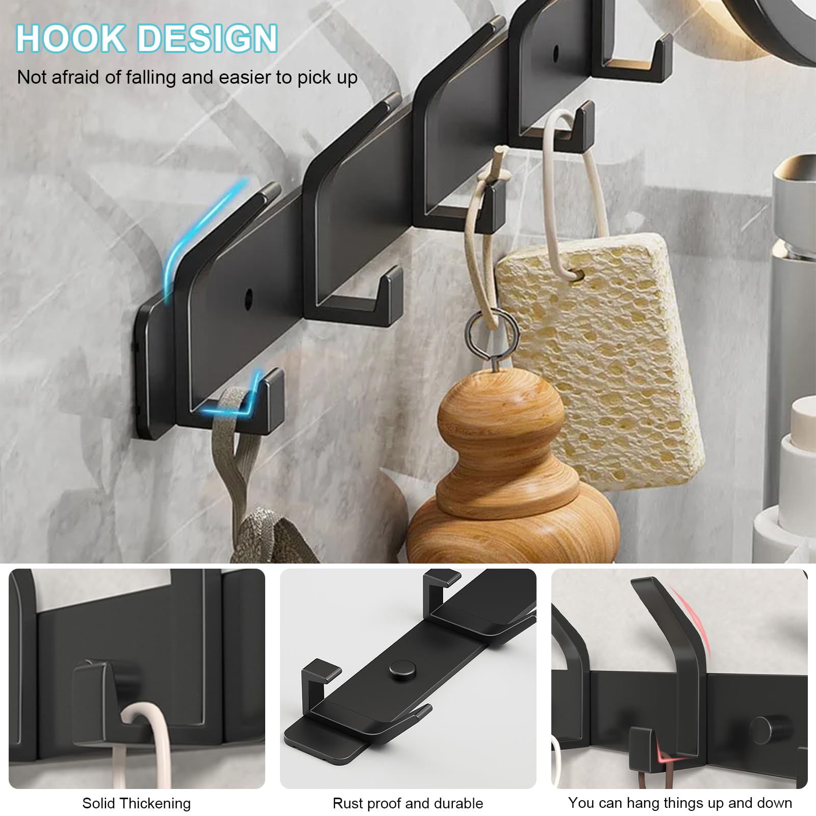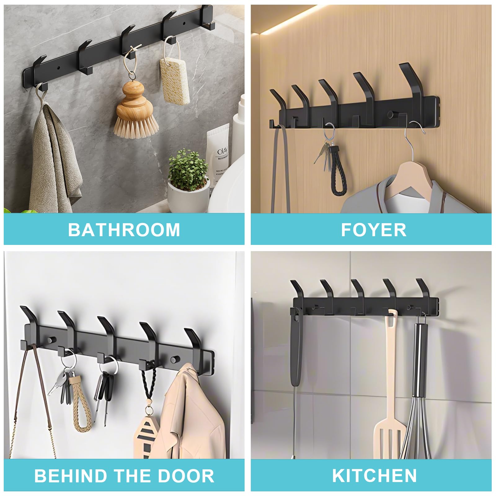 Dxmcgttbd 2 Pièces Porte Manteau Mural,Patere Murale,avec 5 Crochets,Porte Manteau Mural Sans Perçage,Pour Cuisine, Salle De Bain Et Chambre