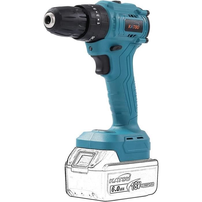Caractéristiques : Type d'outil sans fil : seuse sans fil. Sans batterie ni chargeur Paramètres de couple : 23 + 1., Vitesse à vide : 0-400/0-1400 tr/min., Couple maximal : 32 N., m. Perceuse Visseuse Sans Fil 21V, Perceuse Electrique Avec Led Lampe, 25 Détails du produit Puissante : équipée d'un moteur sans balais haute performance qui offre jusqu'à 120 Nm et une vitesse maximale de 1350 tr/min, cette visseuse à percussion est conçue pour effectuer efficacement les tâches de fixation et le travail du bois. [2 vitesses réglables] Doté de 2 réglages de vitesse de 0 à 500/1350 tr/min, la gâchette vous permet de contrôler la vitesse... Batterie Maison KATSU FIT-BAT 21V Scie Sauteuse Sans Fil Brushless, 26mm Longueur De Visseuse Amazon Type de moteur : moteur sans balais. Livré sans batterie ni chargeur. Gamme d'outils sans fil KATSU FIT-BAT : ils prennent tous la même batterie, fonctionnent à la fois sur 18 V ou 21 V, compatibles avec la gamme LXT, utilisez votre courant ou facile à trouver sur Amazon (compatible avec BL1850 BL1860B BL1855 BL1840 BL1830 LXT-400 BL1820B BL1815). Diamètre maximum du mandrin : 10 mm. Avec un moteur sans balais, la batterie dure presque deux fois plus longtemps que les moteurs à balais normaux, en plus elle est sans entretien.