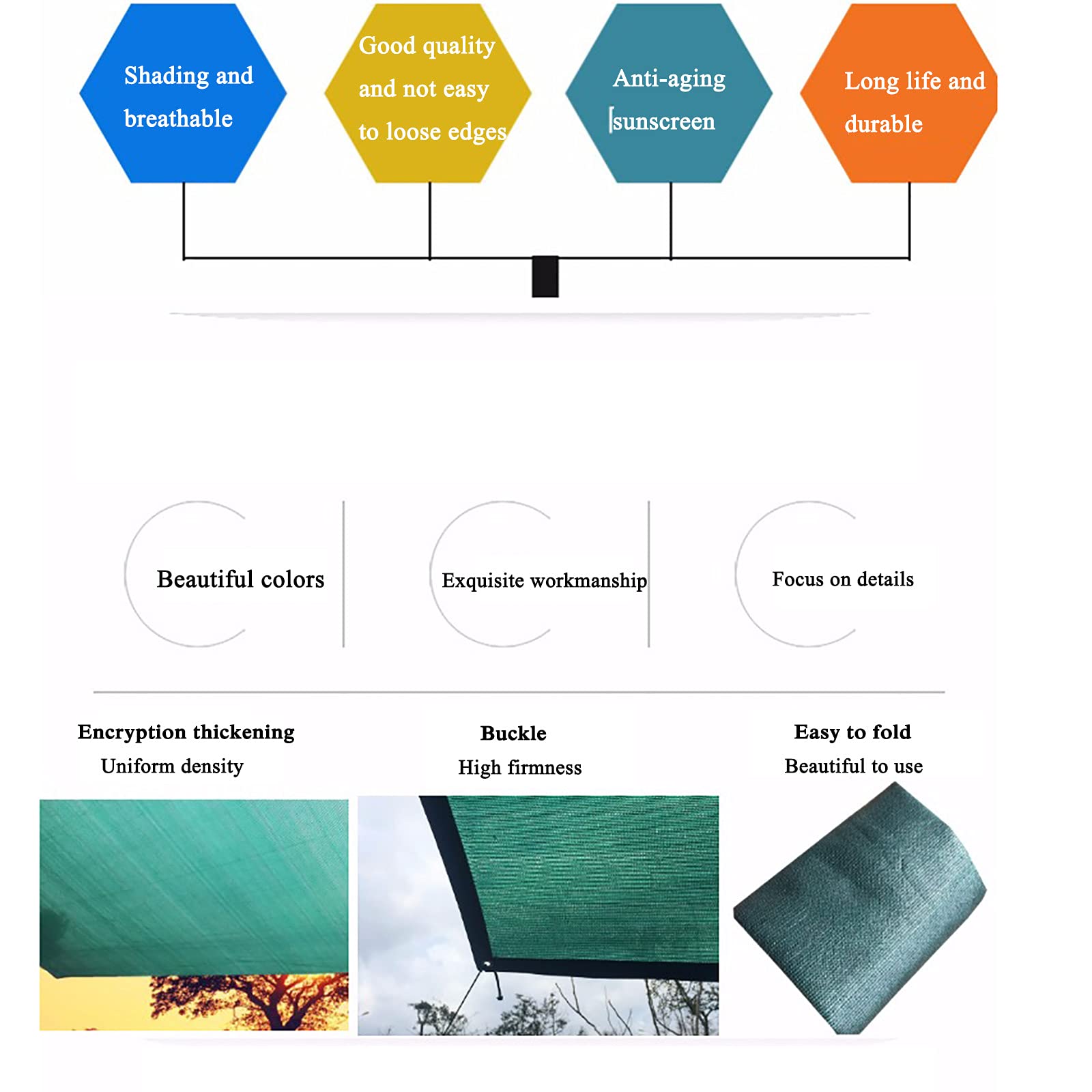 Contenu du produit: un morceau de filet de pare-soleil, cordon de serrage gratuit de 5 mètres Points forts du design: Des trous sont percés au bord de l'emballage et des trous sont percés tous les mètres. Si vous avez des questions, veuillez nous contacter et nous le résoudrons pour vous. Il protège spécialement les plantes de la lumière directe du soleil et laisse passer l'eau et l'air. 1 Toile D'ombrage À 95 % Résistante Uv Œillets - France Paramètre de produit Nom 6 broches noir / 6 broches vert foncé Matériel: HDPE (polyéthylène haute densité) + UV (anti-vieillissement) Caractéristiques: protection de l'environnement, inodore, isolation thermique, respirant, protection UV Taux d'ombrage 95% Endroits applicables: ombrage intérieur, ombrage succulent de hangar, ombrage extérieur, auvents de stationnement et autres petits espaces ombragés. Il n'y a pas d'eau stagnante les jours de pluie. Filet D'Ombrage, 3x4M Filet Protection Solaire 95% UV Tissu D'Ombrage... Conception unique, facile à installer: le filet du pare-soleil a des trous sur les quatre côtés et des boutonnières en aluminium tous les mètres pour le rendre plus facile à accrocher et plus beau. Il résiste aux rayons ultraviolets et à l'eau et ne nécessite aucun entretien. Le processus de tissage spécial est respirant et durable, ce qui signifie une résistance supérieure et une durée de vie plus longue. C'est un choix idéal pour les terrasses, les piscines, les balcons, les abris de voiture, etc. Filet D'ombrage 12 Broches Protection Rayons 75-90% UV Voile Ombrage... Filet D'ombrage Pour Poteaux ZZXY Filet De Ombrage,Tissu D'ombrage À 95%,résistante UV Toile Toile D'ombrage Pour Filets Matériau durable: il est fait de polyéthylène haute densité (HDPE) et la structure tissée empêche la déchirure et l'abrasion.