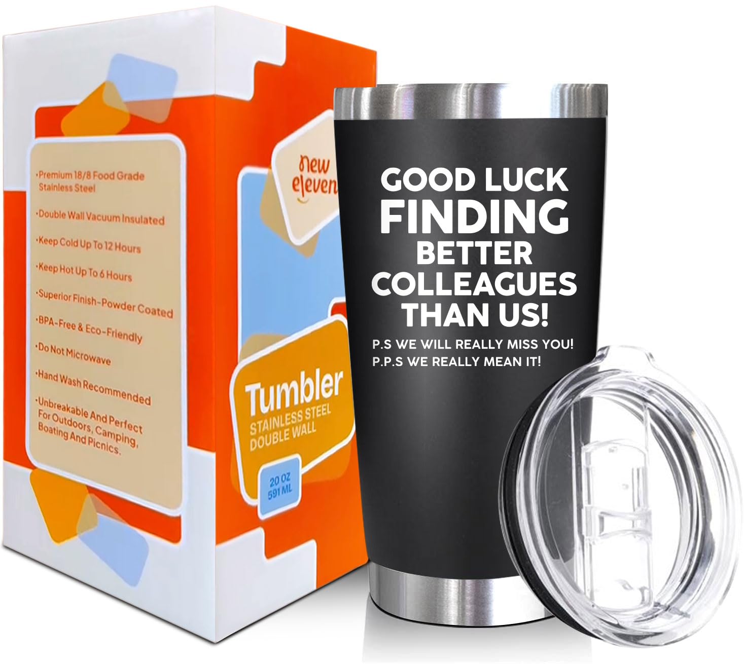 Dites adieu avec style : un collègue quitte-t-il bientôt votre lieu de travail ? Ne les laissez pas partir sans les surprendre avec notre gobelet d'adieu – un cadeau parfait pour un collègue spécial. Cadeau de départ de collègue, cadeau de départ pour collègue – Profitez de vos boissons préférées, peu importe où vous êtes avec ce gobelet en acier inoxydable. Cadeaux de départ pour collègues - Cadeau d'adieu / de départ - Cadeau Ce verre à vin vous rappelle que la retraite vous donne la chance de faire tout ce que vous voulez sans vous soucier du travail., Design amusant pour les cadeaux d'adieu : voir un bon ami partir du lieu de travail n'est jamais facile Faites-en votre récipient idéal pour la tuyauterie de café chaud, de thés glacés aux fruits, de jus, de champagne, de smoothies, de sodas, de crème glacée, de boissons énergisantes, de milkshake. NewEleven Gobelet De 591 Ml – Cadeau D'adieu Pour Collègue, Tasse En Acier Inoxydable Sans BPA, Isolation Sous Vide à Double Paroi, Cadeau De Départ Pour Homme Et Femme, Cadeau De Chance Célébrez vos souvenirs : voir un bon ami quitter le lieu de travail n'est jamais facile. Isolation sous vide à double paroi : fabriquée avec une isolation sous vide à double paroi, cette bouteille de 591 ml peut conserver la température idéale de n'importe quelle boisson plus longtemps. Avec ce gobelet sous vide à double paroi, vous pouvez remercier votre collègue pour les moments que vous avez partagés ensemble. Cadeaux d'affaires Double paroi en acier inoxydable isolé gobelet de voyage tasse à café étanche avec manchon en cuir bouteille sous vide · Couleur (5) · Capacité...