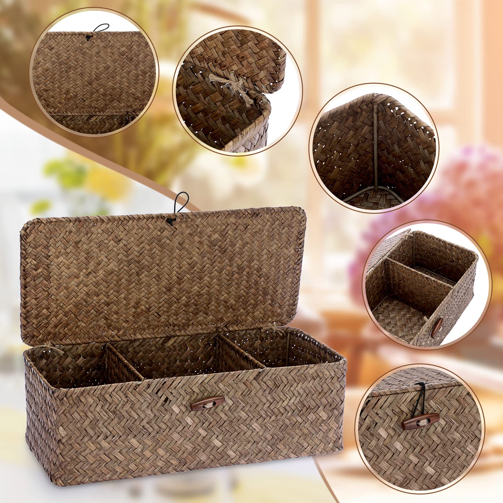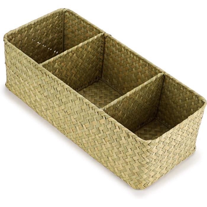 Étant donné que nos paniers sont fabriqués à la main à partir de matériaux naturels, les paniers que vous recevez peuvent avoir une légère variation de taille. Le panier de rangement à 3 compartiments avec couvercle est pratique pour séparer et organiser vos fournitures dans un panier de rangement utile. Chaque compartiment a une taille différente. Polyvalent pour l'organisation : parfait pour organiser et ranger de its articles comme télécommande, mouchoirs, it pot de fleurs, bouteilles de cosmétiques, vitamines, chargeurs, clés, fournitures de bureau, articles de couture. Il s'agit d'un produit naturel qui signifie que le tissage ne sera pas parfait à la machine. Caractéristiques : Dimensions : 36 cm x 16 cm x 12 cm (L x l x H) Matériau : Jonc de mer Couleur : conforme à l'image Contenu : 1 panier de rangement avec couvercles Remarque : 1., Comme nos paniers sont fabriqués à la main à partir de matériaux naturels, les paniers que vous recevez peuvent avoir une légère variation de taille 2., Il s'agit d'un produit naturel qui signifie donc que le tissage ne sera pas parfait à la machine., Entretien : a. Tendance et pratique : non seulement gardez vos articles bien rangés et organisés, mais aussi pour ajouter un look classique et chic à votre intérieur grâce... Description du produit Panier de rangement tendance et polyvalent tissé à la main. Tendance et pratique : non seulement gardez vos articles bien rangés et organisés, mais aussi pour ajouter un look classique et chic à votre intérieur grâce à cette boîte de rangement fabriquée à la main. Connt pour coiffeuse, étagères, bureau, armoire ou table de chevet, etc Panier, jonc de mer, rectangulaire, moyen | Maison chez Dille & Kamille La base robuste donne une structure solide pour fournir résistance et durabilité pour une utilisation polyvalente IGNPION Panier De Rangement Rectangulaire En Jonc De Mer Tissé à 3 Il est facile de soulever, tamiser et trouver ce que vous voulez. Ce plateau de rangement est fabriqué en rotin, léger, durable et respecux de l'environnement. Le compartiment central peut contenir des mouchoirs de taille normale. Tendance et pratique : permet non seulement de garder vos articles bien rangés et organisés, mais également d'ajouter un look naturel classique et chic à votre maison grâce à cette boîte de rangement fabriquée à la main Ce panier de rangement pratique sera une belle décoration en chaque saison, les couleurs naturelles seront bien intégrées dans différents styles de décoration pour montrer votre style.