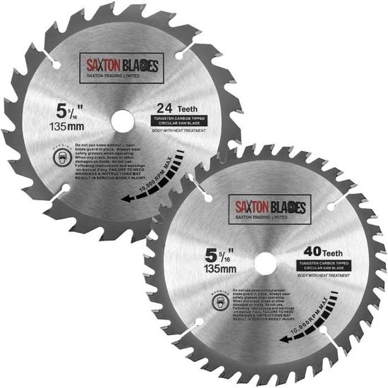 Lames de scie circulaire Saxton : 85-305 mm, 18-100 dents TCT La gamme de lames de scie circulaire Saxton Blades a été conçue pour vous garantir une finition professionnelle sur une large gamme de matériaux. Alésage de 12,7 mm (bague de réduction de 16 mm incluse). 1,8 mm. Dents en carbure de tungstène pour une longue durée de vie Les lames de scie Saxton sont disponibles dans une variété de tailles, allant de 85 mm à 350 mm de taille et 18 à 100 dents TCT. Bosch Professional Saxton TCT Lame De Scie à Bois Circulaire 185 Mm X 80 Dents Pour Scie Scie Circulaire Dewalt Dents en carbure de tungstène pour une longue durée de vie Tct13524t Saxton TCT Bois Lame de scie circulaire 135 mm x 12,7 mm alésage X 24T pour Bosch Makita Dewalt proffesional qualité trempé et revenu à embout en carbure de tungstène lame de scie circulaire. 135 mm de diamètre135 mm x 40 dents lame TCT12,7 mm alésage (bague de réduction de 10 mm inclus)1,8 mm saignéeDents en carbure de... tct13524t Saxton TCT Kreissägeblatt Holz Sägeblatt 135 mm x Lames Saxton pour une large gamme de lames de scie circulaire., 135 mm de diamètre Choisir une lame de scie circulaire avec la bonne taille, diamètre et nombre de dents est essentiel à la fois pour la performance et la sécurité.