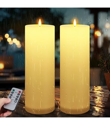 Facile à utiliser : l'interrupteur à trois voies sur le bas vous permet d'allumer/éteindre la bougie ou de régler une minuterie de 6 heures (s'allume pendant 6 heures et s'éteint automatiquement). Contenu de l'emballage : l'emballage comprend 2 grandes bougies d'extérieur sans flamme (15,2 cm de hauteur et 10,2 cm de diamètre) et un manuel de l'utilisateur (français non garanti). Bougies LED sans flamme, Bougies en résine avec minuterie à Source de lumière : LED. Longue durée : chaque bougie pilier en plastique durable est alimentée par 2 piles ... cm de diamètre et 10,2 à 15,2 cm de hauteur Idéal pour la maison et le jardin, les fêtes en plein air et les décorations festives. Lanterne Bougie Fausse Bougie Bougies Led U00e9tanches (lot De 2) - 20cm, Minuterie 6h, Piles AA - Pour Lanternes/extu00e9rieur Bougies Led Flamme Vacillante Bougie Longue Led Le minuteur s'enroule toutes les 24 heures, éteint manuellement la bougie et il se réinitialise. Convient pour les lanternes : ces bougies d'extérieur étanches peuvent s'adapter à la plupart des lanternes intérieures ou extérieures. Avec des piles avancées, elles peuvent éclairer plus de 500 heures (en continu) / 60 jours (minuterie de 6 heures avec des piles de haute qualité). Avec des piles avancées, elles peuvent éclairer plus de 500 heures (en continu) / 60 jours (minuterie de 6 heures avec des piles de haute qualité). Convient...