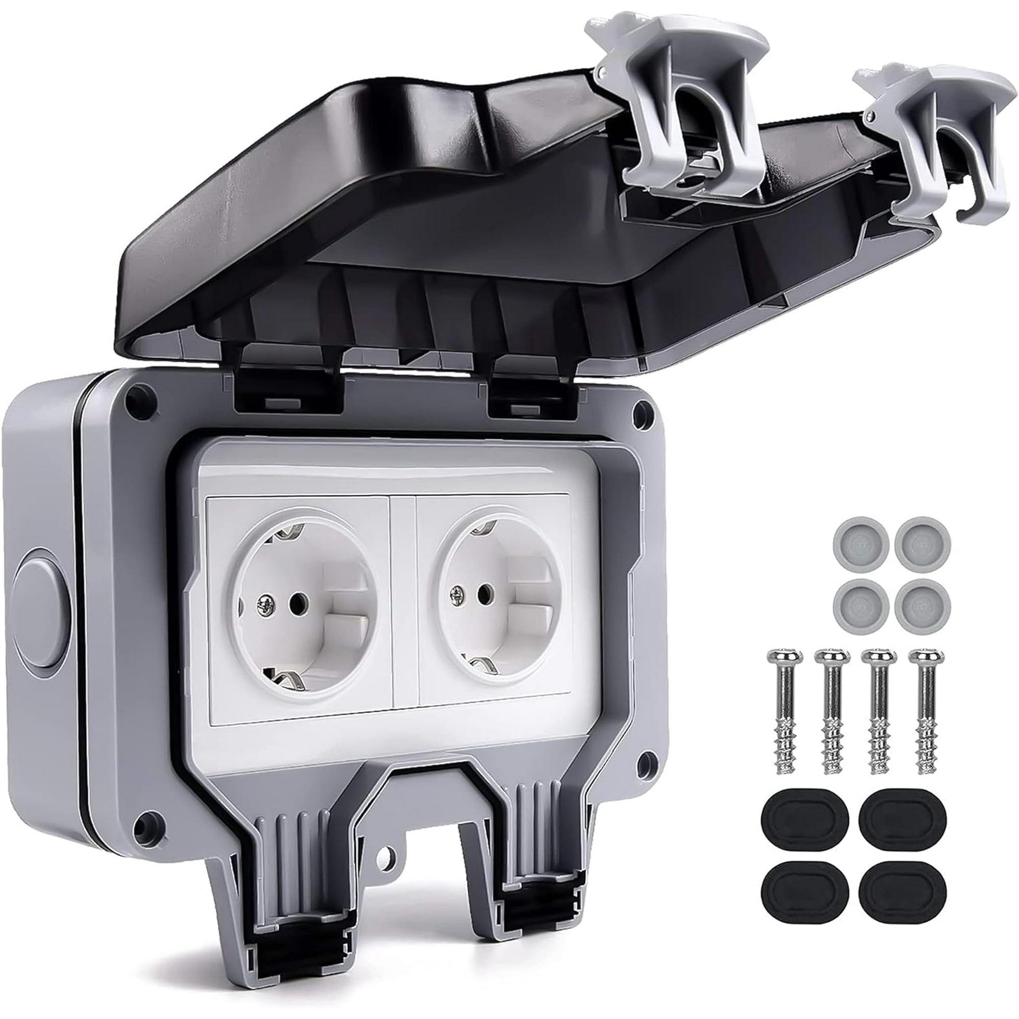 Matériau Durable : La prise extérieure étanche est fabriquée en ABS de haute qualité, qui est durable et garantit qu'elle ne se détériore pas facilement et ne se déforme pas sous l'effet de la lumière du soleil, des températures élevées et basses, etc. Matériau Durable : La prise extérieure étanche est fabriquée en ABS de haute qualité, qui est durable et garantit qu'elle ne se détériore pas facilement et ne se déforme pas sous l'effet de la lumière du soleil, des températures élevées et basses, etc. Protection de la Sécurité : la qualité de la sécurité de la prise est conforme aux normes de l'UE, la tension nominale est de 250 V, le courant nominal est de 16 A. La prise semble solide. L étanchéité est prévue de partout. Les connecteurs des fils serrent bien. Je recommande ce produit par rapport à une plexo grise... Le double joint est en caoutchouc et empêche efficacement la pénétration de l'eau pulvérisée et de la poussière. Prise Etanche Exterieure Ip66 Etanche Exterieur 16A (Double Prise Avec Boite Etanche Electrique Exterieur Prise Extérieure Etanche IP66 - Prise Electrique Murale Avec Prise Extérieure Ip66 Prise étanche double prise de courant extérieure IP66 prise murale étanche Prises Extérieures Polyvalentes : les prises étanches à la poussière et à l'eau peuvent être utilisées à l'extérieur ou dans des environnements intérieurs humides, tels que les jardins, les ateliers, les patios, les piscines, les terrasses et les salles de bains. Facile à Installer : La prise extérieure est facile à installer : il suffit d'ouvrir la prise, de brancher le câble sur le connecteur, puis de le rebrancher. Prises Ext rieures Polyvalentes les prises tanches la poussi re et l'eau peuvent tre utilis es l'ext rieur ou dans des environnements int rieurs humides, tels que les jardins, les ateliers, les patios, les piscines, les terrasses et les salles de bains. Le double joint est en caoutchouc et empêche efficacement la pénétration de l'eau pulvérisée et de la poussière.