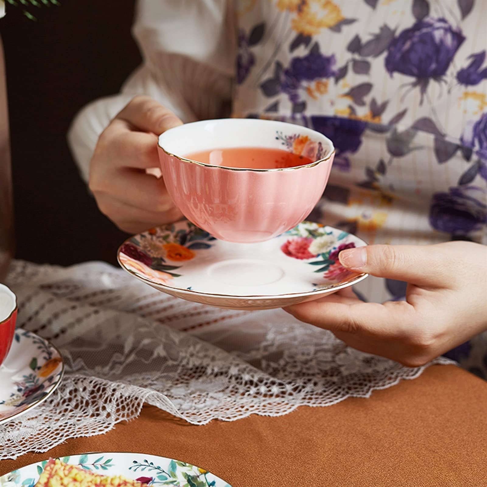 British Royal Series Service à thé en porcelaine avec tasses et soucoupe pour 6 personnes 225 ml avec théière, sucrier, pichet à crème, cuillères à café et passoire à thé Luxe royal : ce lot comprend quatre élégantes tasses en porcelaine fine de 140 ml de style royal britannique et deux soucoupes antidérapantes assorties. Porcelaine de luxe : nos tasses et soucoupes sont fabriquées à la main à partir de porcelaine anglaise de haute qualité. Parfait comme objet de collection ou cadeau festif. Porcelaine Anglaise COSTMANCE Lot De 2 Tasses à Café En Porcelaine Fine Avec Soucoupes, Style Royal Britannique, 118 Ml, Petite Tasse à Thé Et Soucoupe Pour Thé De L'après-midi Ou Cadeau Kahve Fincan Seti [Sûr à utiliser et adapté pour la vie moderne] Sans plomb et non toxique, ce produit a subi des tests de qualité stricts pour garantir une utilisation sûre et sans souci. Emballage exquis : l'ensemble est livré dans une boîte en papier magnifiquement conçue avec du coton perlé à l'intérieur pour éviter les dommages pendant le transport. Passe au lave-vaisselle, au micro-ondes, au four et au congélateur. Design antidérapant : livré avec une soucoupe assortie pour garantir que la tasse et la soucoupe s'adaptent parfaitement, offrant stabilité et empêchant les glissements ou les déversements accidentels. Par rapport à la porcelaine ordinaire, ils présentent une blancheur plus élégante, un poids plus léger, une rétention supérieure de la chaleur et une durabilité accrue. Luxe royal : ce lot comprend quatre élégantes tasses en porcelaine fine de 140 ml de style royal britannique et deux soucoupes antidérapantes assorties. Le design unique en relief améliore l'apparence noble de la tasse, ajoutant une touche de sophistication et d'élégance, parfait pour le thé de l'après-midi ou pour recevoir des invités Le design unique en relief améliore l'apparence noble de la tasse, ajoutant une touche de sophistication et d'élégance, parfait pour le thé de l'après-midi ou pour recevoir des invités