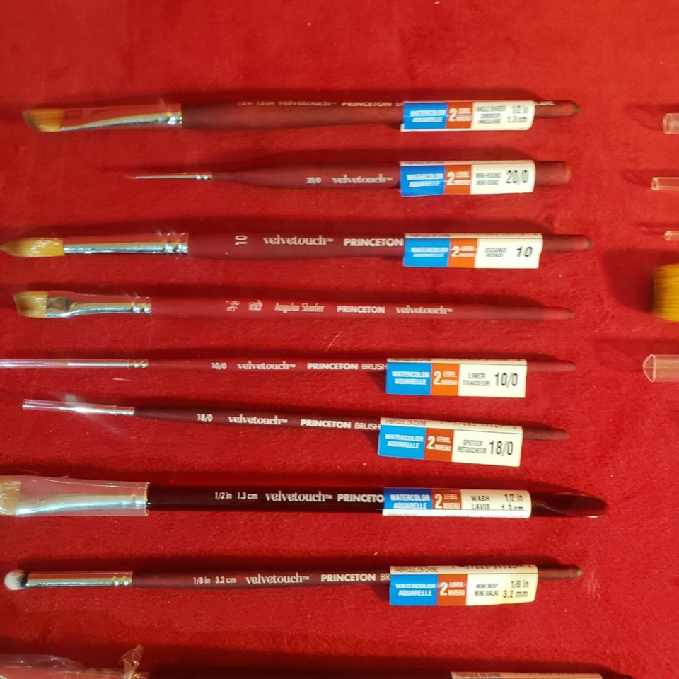 Pinceaux de renommée mondiale : Princeton Artist Brush Co. Pinceaux média mixtes : abordez en toute confiance votre prochain projet de peinture aquarelle, gouache, huile ou acrylique, avec des options pour un manche long, un manche court et des tailles de mini-détails dans une grande variété de formes de pinceaux pour les artistes Une sensation veloutée de qualité supérieure : dispose de la poignée signature antidérapante, finition satinée fabriquée en bois FSC, la norme d'or en matière de bois durable À propos de cet article Contenu : 1 rond taille 4 1 rond long taille 8 1 biseau taille 3/8 1 lavis plat taille 3/4. Idéal pour la peinture à l'huile, l'acrylique et l'aquarelle. Mélange synthétique supérieur unique pour une grande finesse et décrouvrir une différence de qualité exceptionnelle. Manche doux très agréable au toucher. Voir plus de détails Signaler un problème... Un ensemble Velvetouch de Princeton comprenant une variété de pinceaux synthétiques de luxe pour les techniques mixtes. Présentant des pinceaux à manche court, cet ensemble convient pour l'acrylique, l'aquarelle et l'huile. Une qualité supérieure pour les artistes professionnels. Contient un pinceau biseauté 3/8, un pinceau long rond 8, un pinceau rond 4 et un pinceau à lavis 3/4 Princeton Velvetouch | Pen Store Pinceau Professionnel Amovible Princeton Velvetouch Artiste, Pinceau à Médias Mixtes Pour Acrylique, Aquarelle Et Huile, Série 3950 éventail Synthétique De Luxe, Taille 10/0 Peinture à L'huile