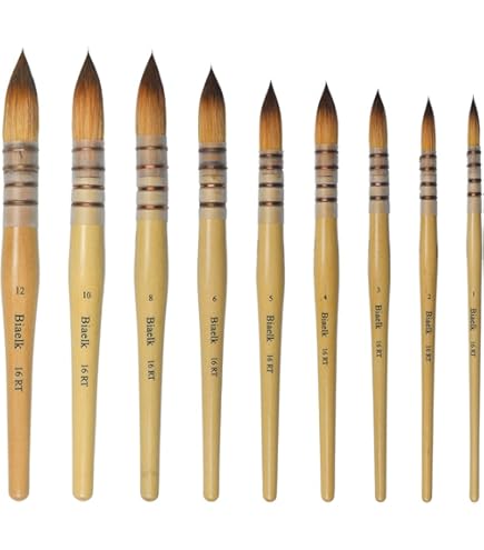 Tailles 1, 2, 4, 6 dans un élégant coffret cadeau noir, longueur du pinceau : 20 cm. I needed some new brushes, having lost four of my favorites during a move. After looking at these on the site and reading all the "positive" reviews I went ahead and clicked buy Excellent cadeau pour vos enfants, amis, débutants, artistes ou toute personne qui s'amuse à peindre. Les artistes doivent utiliser les meilleurs pinceaux pour créer de merveilleuses œuvres d'art. Dainayw Watercolor Paint Brushes, 4 Size Professional Round Watercolor Paint Brushes, Each A Mop Or Wash Round Made Of Squirrel Hair Stock Photo Ils retiennent l'eau et la pointe De taille généreuse et façonnée à la main, sa pointe unique permet des traits complets sur le papier.