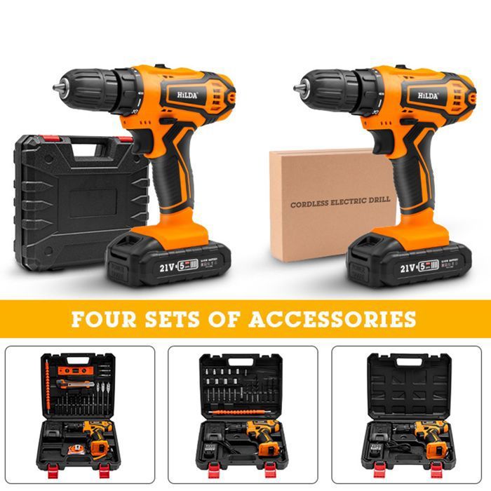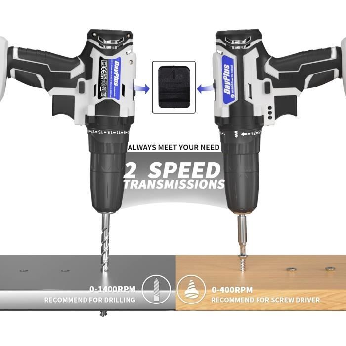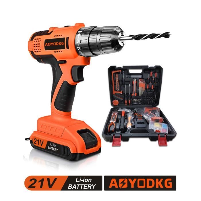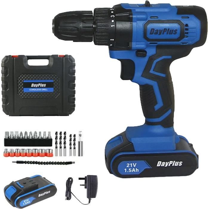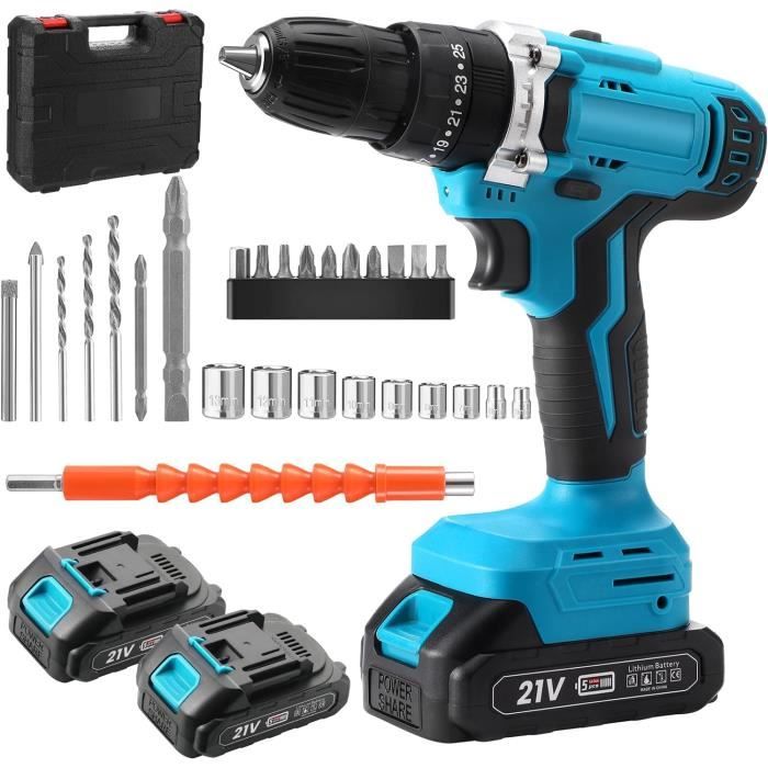 Kit Perceuse Batterie 21v Perceuse Visseuse Sans Fil 21V - Kit Avec 2 Batteries, 45N.m, 25 1 Positions, 29 Accessoires Perceuse Bricolage Couple 45N.m