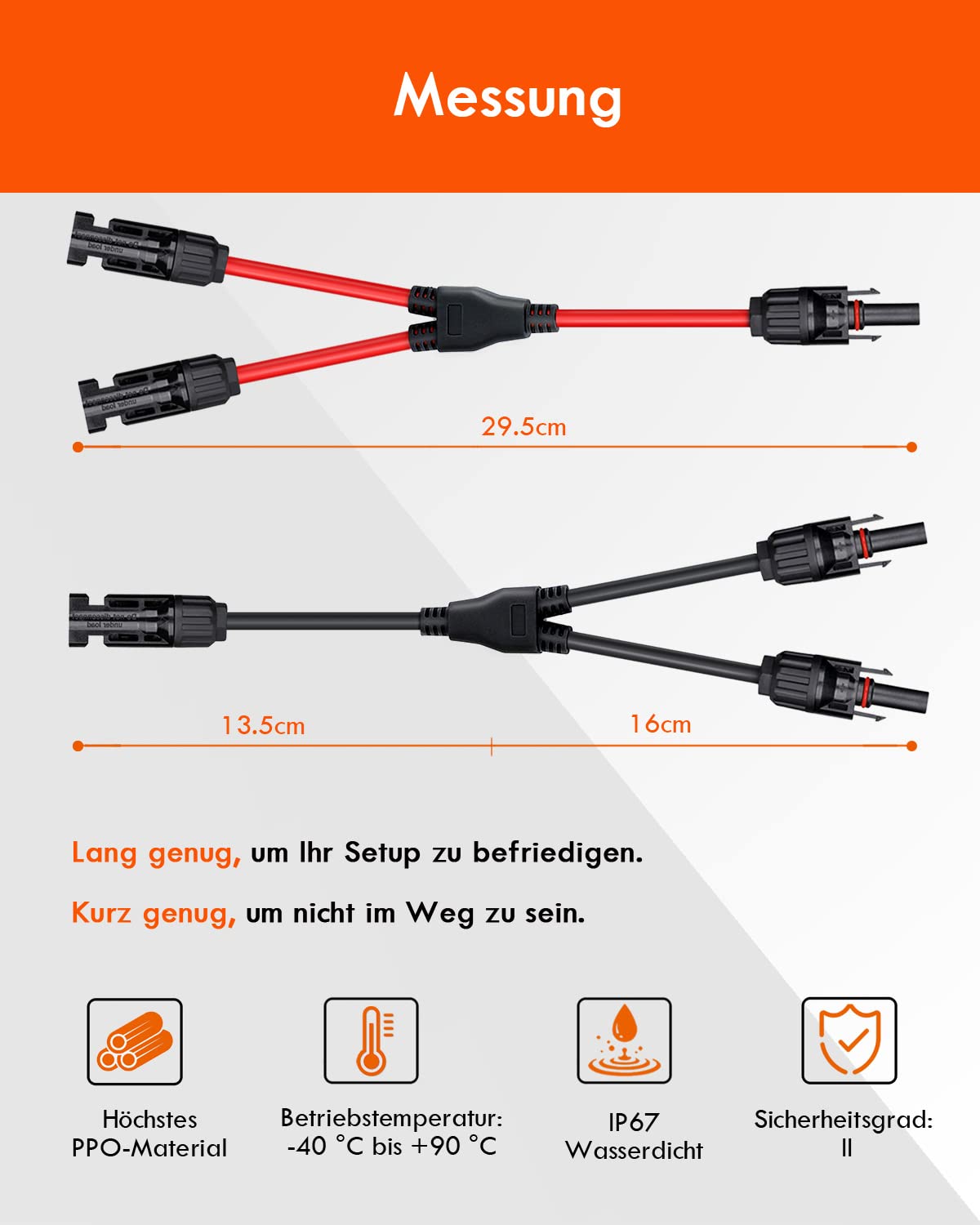 【Grande flexibilité】La structure ingénieuse du solar Y kabel 4mm² en fait un outil polyvalent et flexible. Ces caractéristiques en font un choix essentiel pour les systèmes d'énergie solaire où la sécurité ne peut être compromise. Cable Mc4 4mm² 2m Câble Solaire,Câble Panneau Solaire Avec Connecteur MC4 1/2/3/5 Cable Mc4 6mm2 Sa conception en Y permet une distribution d'énergie flexible et s'adapte parfaitement à divers modules solaires, onduleurs et autres composants. Cet avantage de conception réduit considérablement les pertes d'énergie lors de la transmission et garantit un fonctionnement efficace des systèmes solaires. Cela accélère considérablement l'installation des modules solaires, réduit les efforts de montage et optimise l'efficacité de la construction dans les projets résidentiels et commerciaux. Nous vous apporterons une solution satisfaisante dans les plus brefs délais. Cela simplifie la construction de systèmes d'énergie solaire et ouvre un large éventail de possibilités d'application, des simples installations sur toiture aux configurations complexes dans les projets industriels. Même après des années d'utilisation en extérieur, sa fonctionnalité reste intacte et, avec une durée de vie allant jusqu'à 25 ans, il réduit considérablement les coûts et les efforts de remplacement des câbles. Description of 2 to 1 Solar branch wires ·Dual wall insulation. Accessoire de montage de panneau solaire BOY 1 paire de connecteur de branche solaire connecteur de panneau MC4... Que ce soit dans les déserts brûlants, les hautes altitudes glacées ou les côtes humides, le solar Y kabel 4mm² offre des performances fiables quelles que soient les conditions météorologiques. 【Excellente conductivité】Le solar Y kabel 4mm² utilise des conducteurs en cuivre de haute qualité et de haute pureté, offrant une résistance minimale. 【Haute sécurité】La sécurité est une priorité absolue pour le solar Y kabel 4mm² : sa couche isolante de haute qualité, composée de matériaux avancés, prévient efficacement les fuites électriques et protège les utilisateurs et les équipements. 【Excellente résistance aux intempéries】Le solar Y kabel 4mm² est doté d'une gaine extérieure et d'une couche isolante fabriquées dans des matériaux innovants offrant une résistance exceptionnelle aux rayons UV, aux variations de température et à l'humidité. Avec ses connecteurs MC4 mâles et femelles, il est compatible avec la plupart des systèmes photovoltaïques. Le degré de protection IP67 garantit une parfaite...