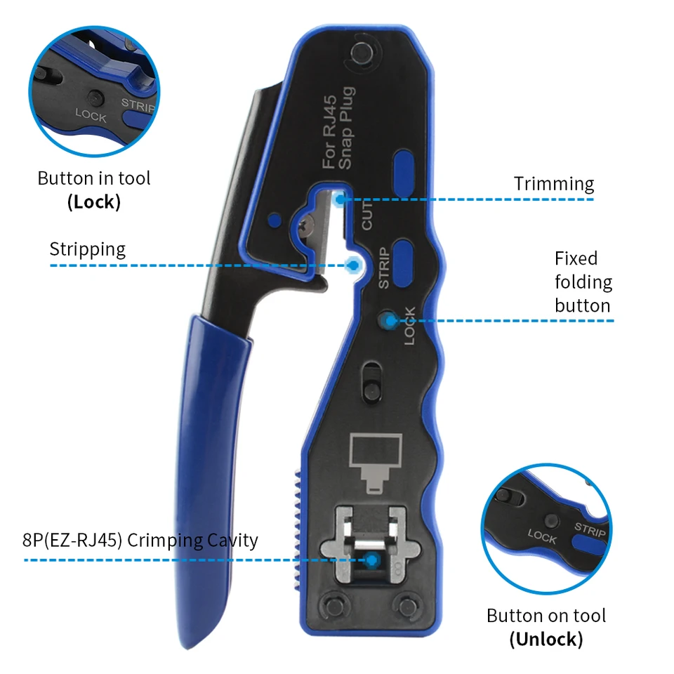 L'outil de test de câble réseau nécessite une batterie de 9 volts pour fonctionner et la batterie n'est pas incluse dans le colis. Connecteur RJ45 Cat6 Livré avec 30 connecteurs pour câbles réseau Cat6, Cat5, Cat5e 24-26 AWG, vous permettant de créer vos propres câbles Ethernet de longueur personnalisée plus facilement pendant le câblage de décoration de la maison ou l'ajout de nouveaux périphériques réseau. * La compacité le rend plus facile à manipuler, à emporter et à ranger par rapport à d'autres outils de sertissage. Compatibilité : l'outil de sertissage RJ45 est conçu pour fonctionner avec des prises modulaires RJ45 à 8 positions. Pince Sertissage RJ45 Pass-Through 3-en-1 – Crimping, Dénudage Mini pince à dénuder La pince à dénuder vous permet de dénuder facilement et précisément les fils épais et fins sans endommager le fil principal. Commandez avec livraison offerte ! Caractéristiques : * Outil de sertissage modulaire tout-en-un pour couper, dénuder et sertir. Il peut également être utilisé pour presser le fil dans la prise Keystone. Les ensembles moulés sous pression de précision garantissent des coupes nettes et des connexions modulaires solides. Conçu pour les connecteurs 8P RJ45 Cat5/5e Cat6/6a à travers droit/non blindés/non blindés et les connecteurs téléphoniques 6P/6C. Rj45 Cat 7 Pince à Sertir... Les gaines flexibles offrent une protection essentielle contre la flexion extrême et le soulagement de la traction pour les connexions de câble. Pince à sertir Ethernet professionnelle incisive à double usage avec... Vous pouvez l'utiliser pour sertir les connecteurs Ethernet RJ45 Cat6 Cat5 Cat5e et couper les fils supplémentaires lors du sertissage. Guide de câblage pratique et design de libération de sécurité : l'outil de sertissage RJ45 est conçu avec des codes de couleur de câblage, permettant d'obtenir la bonne couleur des fils rapidement lors du sertissage. Testeur de câble réseau Testez à la fois les câbles téléphoniques RJ11 et les câbles Ethernet LAN RJ45 ainsi que les câbles réseau Cat6 Cat5 Cat5e Cat6a Cat7., L'outil de test du câble réseau nécessite une batterie de 9 volts pour fonctionner et la batterie n'est pas incluse dans le colis. Pince Sertir Rj45 Pince à Sertir Ethernet RJ45 Pour Connecteurs RJ45 Cat6 Cat5 Cat5e Kit Rj45 * Design ergonomique pour une prise en main moins fatiguante, en particulier lors du sertissage pendant une période prolongée.