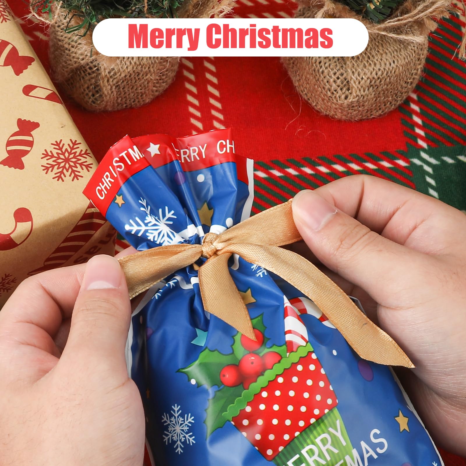 Lot De 50 Sacs à Friandises De Noël Avec Cordon De Serrage En Plastique Pour Biscuits, Collations, Friandises, Cadeaux De Noël (5 Styles