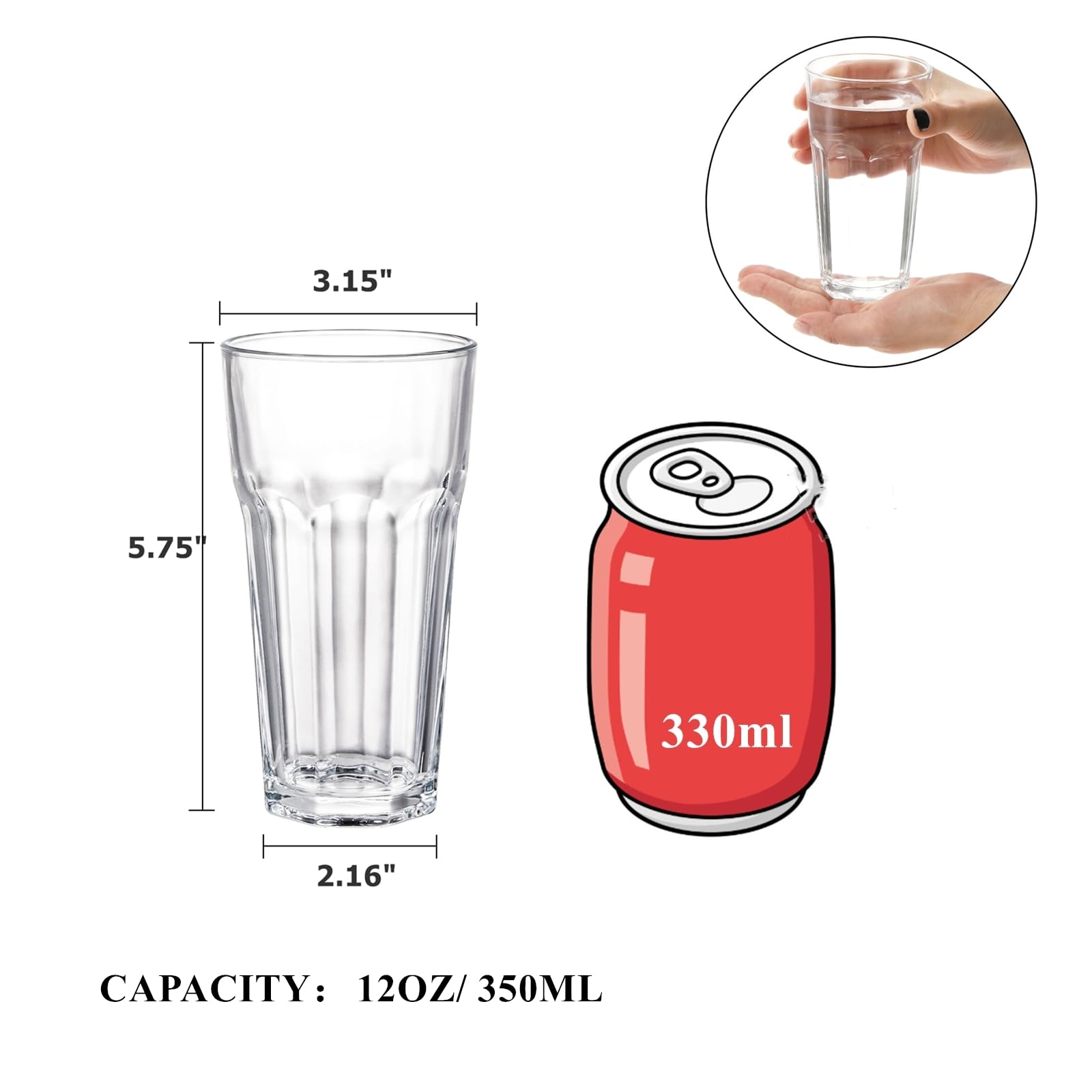 Yopay Lot de 8 verres highball, 355 ml, verres à eau trempée sans plomb, à base épaisse et lourde, verres transparents pour cocktail, jus, milkshake, coca, soda et bière Cet ensemble de verres highball comprend 8 verres. Cadeau parfait : meilleur cadeau pour Noël, un anniversaire, une fête de mariage, votre boisson la plus vendue, la Saint-Valentin, un anniversaire, la fête des pères, la fête des mères, une pendaison de crémaillère, le Nouvel An, une remise de diplôme, etc. Yopay Lot de 6 verres à boire de 473,6 g, verres à eau trempés épais, sans plomb, verres transparents pour thé chaud glacé pour jus, bière, cocktails, milkshake... Yopay Les verres à eau ont été traités au tempérament pour une durabilité maximale. Verres très polyvalents : nos verres transparents sont parfaits pour toutes les boissons, y compris le thé glacé, l'eau glacée, le thé chaud, l'eau chaude, les jus, les cocktails, le coca, le soda, la bière, les milkshakes, les smoothies et les boissons mélangées. Diamètre du haut : 8 cm. Ces verres ont la taille parfaite pour toute occasion ou toute utilisation quotidienne. Pas trop lourd et passe au lave-vaisselle. Diamètre de la base : 5,5 cm., Hauteur : 14,6 cm. Cet ensemble de verres highball comprend 8 verres. Mfacoy Lot de 8 verres à boire – 4 grands verres et 4 verres à vin courts Yopay Lot De 8 Verres Highball, 355 Ml, Verres à Eau Trempée Sans Plomb, à Base épaisse Et Lourde, Verres Transparents Pour Cocktail, Jus, Milkshake, Coca, Soda Et Bière Chaque verre a une forme polyédrique en forme de crête, ce qui peut améliorer la stabilité et l'équilibre.