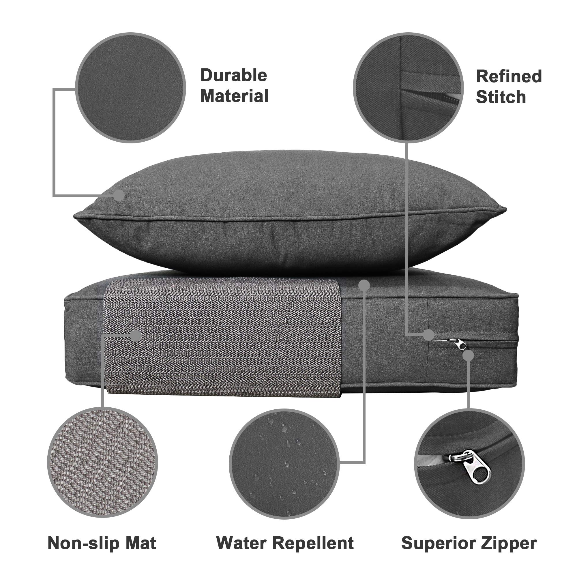 Ce coussin utilise un bouclier de protection en tissu imperméable pour couvrir vos coussins lorsque vous ne vous en servez pas, offrant une excellente protection contre la saleté, les débris, la pluie légère et la rosée du matin. Facile à utiliser : le bouclier de protection intégré s'enroule facilement sur vos coussins et se fixe en toute sécurité avec une sangle Velcro pratique. Rendez votre expérience d'assise en plein air plus pratique et agréable avec le coussin d'extérieur CoveredCushion – la solution ultime pour garder vos coussins de canapé propres et secs LALATOK 2 Pcs Coussins de Siège de Voiture, Coussin Voiture Siège Ensemble De 3 Coussins D'extérieur Assise Dossier Latéral Canapé Gris... Coussin Chaise Extérieure Ikea ZORQ Coussins De Siège De Voiture Pour La Conduite - Tapis De Coussin Pour Chaise Extérieure Dites adieu à la récupération des coussins d'une boîte de rangement avant de pouvoir vous asseoir. Durable et résistant à la décoloration : nos housses de coussin résistantes à l'eau restent en bon état pendant plusieurs saisons grâce à notre utilisation de tissu résistant à la décoloration, lavable en machine et à la protection supplémentaire de notre bouclier intégré. Reste en place : les coussins de siège disposent d'une surface inférieure antidérapante pour éviter de glisser, tandis que les attaches pratiques aux coins arrière offrent une fixation sûre aux cadres de meubles. Profitez de la tranquillité d'esprit en sachant que vos coussins d'extérieur sont protégés et toujours prêts pour votre plaisir en plein air. Par temps venteux, le bouclier de protection intégré empêchera les coussins de dossier de s'envoler.