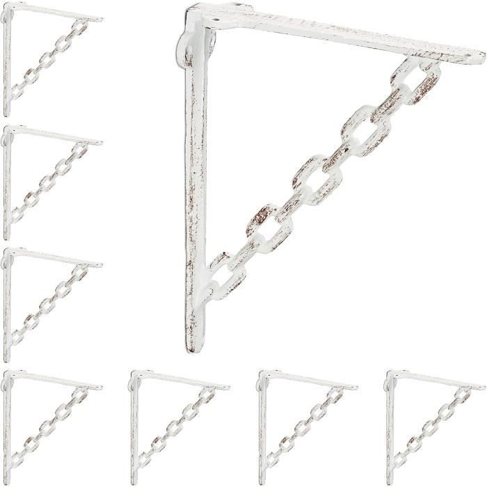 Détails: Console d’étagère avec 3 trous par côté - Installer au mur le côté long ou court Poids par support : environ 0,4 kg Plus de 10 ans d'expérience Design vintage pour un charme nostalgique sur le mur Équerres étagères murales supports muraux consoles vintage fixations en fonte Pour plus de stabilité et de discussion, la barre qui relie le long au côté court assure la stabilité. Relaxdays Équerre étagère Murale, Lot de 4, Ancien, Support en Fonte de Fer, Ornements baroques, Noir salon, jardin, loisirs Relaxdays est une entreprise de commerce électronique qui met l'accent sur les produits ménagers., Marque allemande , Normes européennes Elle est conçue dans un design original de chaîne qui donne un style industriel remarquable et attire tous les regards. Flexible: Grâce aux 4 supports, vous pouvez fixer une large gamme d’étagères sur le mur - En blanc Vous aimez les étagères qui non seulement remplissent leur mission mais qui aussi donnent un accent particulier à vos murs ? Alors les deux supports d'étagères en fonte de style Shabby Chic rustique sont exactement ce qu’il vous faut. Pour une stabilité supplémentaire et pour faire jaser, ces deux éléments de fixation sont parés d’une traverse qui relie le côté long et court... Fonte: Support d’étagère vintage en métal au look Shabby Chic - Style antique pour le mur Relaxdays Équerre étagère murale, lot de 2, ancien, support en fonte de fer, ornements baroques... Convient pour toutes les pièces Contenu : 4 supports d'étagère d'angle (sans matériel de montage). Motif chaîne : Supports d’étagère avec traverse diagonale au design chaines font attirer les regards Lot de 4 équerres d'étagère en fonte Vous aimez les étagères qui ne remplissent pas seulement leur travail mais ajoutent également une touche particulière à vos murs ? Alors les supports d'étagère en fonte au look rustique shabby chic sont exactement le bon choix. e Relaxdays Équerre étagère Murale, Lot De 4, Style Ancien Equerre Noir Orienté par le client , Excellent