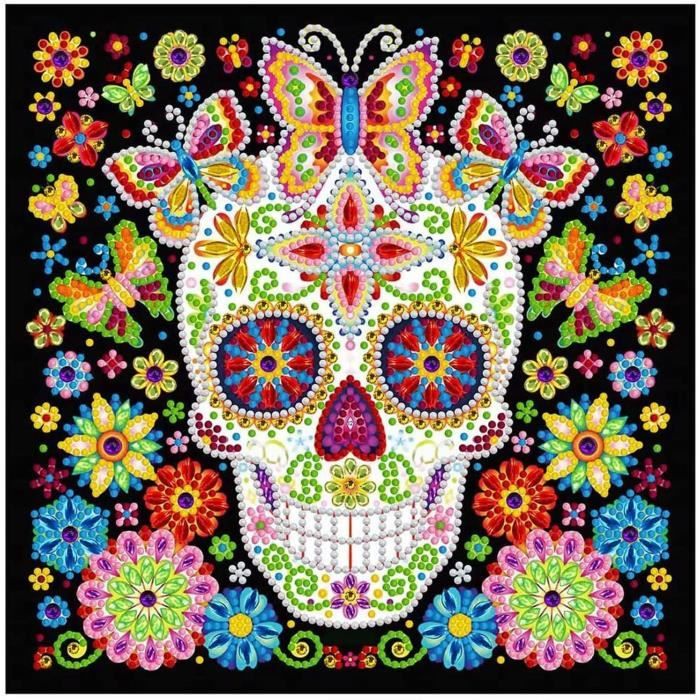 Libérez votre créativité avec notre kit de peinture au diamant : un artisanat délicieux et relaxant adapté à tout le monde, des artisans chevronnés à ceux qui explorent leur premier effort créatif, ce n'est pas seulement facile mais immensément agréable, procurant un sentiment de calme et d'accomplissement., Principales fonctionnalités : 1., Toile de qualité HD : Conçue pour s'aplatir en quelques minutes, la toile présente un fond collant avec un film plastique protecteur, garantissant que vos diamants restent bien en place., 2., Motifs clairement imprimés : Découvrez la clarté de la technologie d'impression 3D haute définition sur notre toile. Rehaussez vos décorations DIY avec des strass. Obtenez un sentiment d'accomplissement tout en réduisant le stress et en ajustant vos émotions. Parfait pour les amateurs de point de croix et de broderie, les débutants en art et les amis et la famille chers. Découvrez la joie de la peinture au diamant ! Encadrez-les et accrochez-les sans effort pour embellir n'importe quelle pièce, que ce soit votre salon, votre chambre, votre bureau, votre restaurant ou votre bar. Diamond Painting Tete De Mort Diamond Painting Kit, 5D Diamond Painting Canevas Diamant Kit Complet Pour Enfants Adultes Art Diamond Painting Grande Taille Soulagement du stress et création joyeuse-Offrez-vous l'expérience thérapeutique de la peinture diamant DIY. Profitez de la satisfaction de décorer votre espace avec un chef-d'œuvre d'art précieux. Les diamants peints en 5D, fabriqués à partir de résine durable, dégagent un éclat unique, scintillent magnifiquement et ne se décolorent jamais avec le temps, garantissant un chef-d'œuvre durable et visuellement époustouflant. Ce voyage artistique favorise la confiance en soi et insuffle plus de joie dans votre vie. Processus créatif sans effort et agréable-Recevez 20 couleurs de diamants de haute qualité, une toile collante numérotée et des outils complets de peinture diamant, y compris un stylo diamant de précision, un plateau cube diamant et de la cire pour peinture diamant. Les symboles numériques clairs et faciles à lire sur la toile vous permettent de créer votre œuvre d'art sans aucun tracas. Artisanat de haute qualité-Rehaussez votre décoration avec notre kit de peinture diamant de haute qualité.