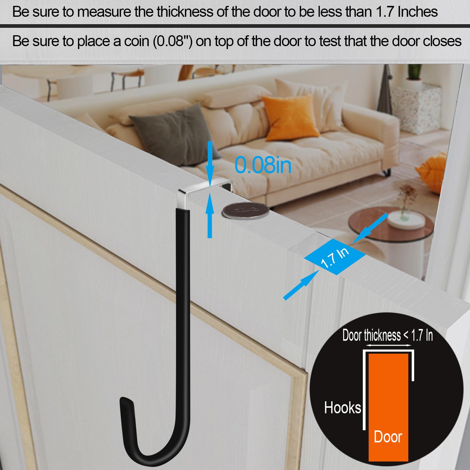 Veuillez vous assurer qu'il y a un espace pour pièces de monnaie (0,2 cm) sur la porte. Solide et durable - Capacité de charge de 30 kg : vous obtiendrez 4 crochets de porte blancs de haute qualité, les crochets de porte robustes sont fabriqués en métal de haute qualité de 2 mm d'épaisseur, qui est plus grand et plus solide que les crochets de porte ordinaires. Contenu : Contient 4 crochets de porte blancs de haute qualité, chacun peut supporter 9 kg. Apparence tendance, pas besoin de perforer : les crochets de porte blancs simples ont un design élégant, et la surface du crochet est spécialement conçue pour éviter la corrosion et la rouille. Lot de 36 Crochets de Levage pour Rideaux Caractéristiques : - Crochets de porte fabriqués en métal de haute qualité, la capacité de charge maximale est de 13,6 kg, ce qui est robuste et durable. Nous comprenons votre quête d'un environnement familial confortable et bien rangé, c'est pourquoi nous avons amélioré les matières premières et l'artisanat des crochets de porte, et développé un crochet de meilleure qualité, vous permettant d'organiser facilement vos affaires, de dire adieu au désordre et d'avoir une maison chaleureuse et confortable. Le design en caoutchouc souple de la surface du crochet peut protéger la porte et les vêtements des rayures Peasulin est une équipe professionnelle spécialisée dans la recherche et le développement de produits ménagers. Poids du crochet : 47,6 g. Large gamme d'utilisations, adieu au désordre : crochet de porte pour salle de bain, cuisine, chambre, salon, garage, hôtel, porte d'armoire, crochets de porte pour accrocher vêtements, peignoirs, serviettes, ustensiles de cuisine, sacs à chaussures et autres décorations. Idéal pour suspendre des vêtements, des serviettes, des chapeaux, des manteaux, des sacs et plus encore. Les crochets transforment votre porte en un espace de rangement pratique, gardant votre pièce organisée et sans encombrement. Ce que vous recevrez : le paquet contient 4 articles sur les crochets de porte Crochets de serviette pour porte aspect tendance, faciles à transporter, créant plus d'espace. Lot De 5 Crochets De Suspension Pour Bassin, Support Mural Pour Panier A Plantes Support Pour Manteau En Plastique 86200667 HAUTE QUALITÉ : Nos crochets de porte sont fabriqués en métal robuste, durables et antirouille, ne se déformeront pas et garantiront des performances durables. Peut contenir jusqu'à 20 lb par crochetDimensions : longueur du crochet de porte 5,12 pouces, largeur de rainure 1,4 pouces, s'adapte à la plupart des portes avec une plage de largeur de 0,7 à 1,4 pouces. Veuillez mesurer votre... Nous vous donnerons une réponse satisfaisante dans les 24 heures. Ils ne bougent pas et ne se ferment pas facilement sans bruit. Rappel avant d'acheter : 1., Veuillez mesurer l'épaisseur de votre porte pour être inférieure à 4,3 cm., 2., Assurez-vous qu'il y a un espace pour pièces de monnaie (0,000 cm) sur la porte, Si vous avez des questions sur nos produits, n'hésitez pas à nous contacter. - Crochets de porte pour suspension fabriqués avec un processus spécial, anti-corrosion et antirouille, de haute qualité. Poids de la boîte de 4 crochets : 297,7 g.