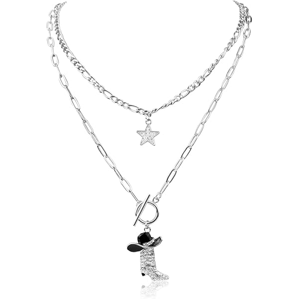 Spécifications : Couleur : or Matériau : alliage Taille du produit : longueur 40 cm, chaîne d'extension 5 cm Détails du colis : 1 x collier pendentif Remarque : En raison de la mesure manuelle, la taille et le poids peuvent présenter une certaine erreur. Cadeau parfait: Idéal En tant que cadeau réfléchi pour les anniversaires, les anniversaires ou les occasions spéciales, ce collier est un bel accessoire que toute femme appréciera. Collier maille trombone noir ras de cou - Chaine homme collier année de naissance Look tendance: Ce collier en or délicat présente une chaîne de trombone et un pendentif de cow-girl occidental à la mode, un arc, un chapeau, des bottes de cowboy et des charmes de coeur, offrant une touche chic et à la mode à n'importe quelle tenue. Long Collier Femme Fantaisie Punk Multicouche Cubain Chunky Épais Collier Ras Du Cou Femmes Vintage Sculpté Pendentif Collier Bijoux N207264 Collier Breloque Femme Contenu de l'emballage: vous obtiendrez 1 collier breloques femme. Matériel produit: en matériau en alliage de qualité, artisanat exquis;La longueur est de 40 cm, et avec une chaîne d'extension de 5 cm, confortable à porter, pas facile à décolorer, pas blesser votre peau, belle et généreuse à porter, peut vous servir pendant longtemps. Style polyvalent: le design polyvalent du collier le rend parfait pour les occasions décontractées et formelles, telles que les fêtes, les dates, les vêtements quotidiens, complétant sans effort divers styles et ensembles. Promotion Chaîne trombone en acier inoxydable, pour homme et femme. - Colliers/Collier tendance...