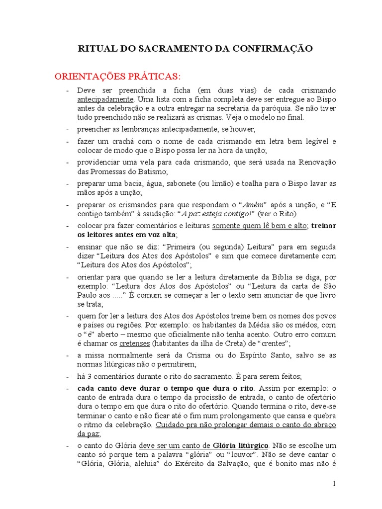 O Segredo do Rosário: Catecismo Ilustrado - Parte 24- A Confirmação OS RITOS DE PASSAGEM, O RITUAL DA CONFIRMAÇÃO E A ÉTICA PROTESTANTE NO CONTEXTO LUTERANO E... Cerimonial Dos Bispos Pdf Os Sinais E O Rito Do Sacramento Da Confirmação Guião Para A Celebração Do Crisma Ritual Do Sacramento Da Confirmação - Missa e Rito. Atual Credes em Jesus Cristo, seu Filho único, nosso Senhor, que nasceu e padeceu por nós, ressuscitou e está sentado à direita do Pai? Crismandos: Creio Bispo: Credes no Espírito Santo, no perdão dos pecados, na ressurreição da carne e na vida eterna