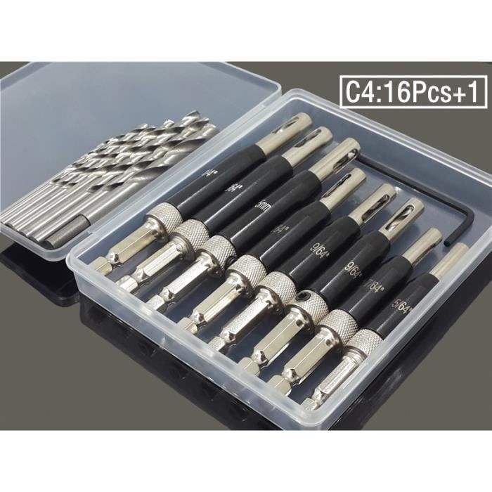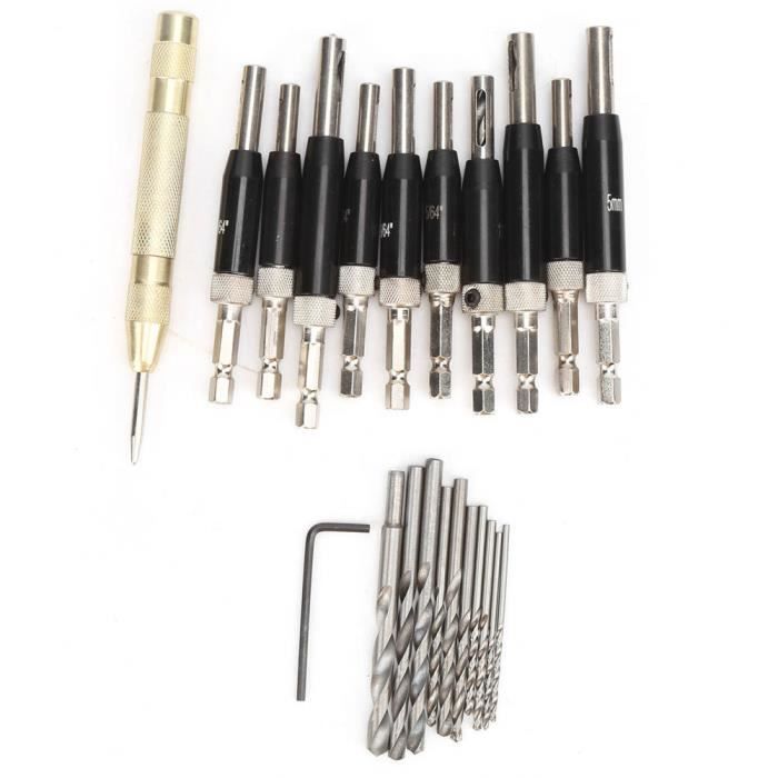General Tools Le lot de 2 forets à charnière à centrage automatique 290ST dispose de deux forets auto-centrants robustes, de 1,2 cm., et 9/64. GENERAL TOOLS: Nous sommes un leader reconnu dans la conception et le développement d'outils de précision spécialisés dédiés à fournir un service client exceptionnel. KIT DE FORETS de centrage de charnière d'armoire efficace 7 pièces outils de c EUR 28,58 Facile à utiliser et à installer, changement rapide des embouts, chargement et déverrouillage d'une seule main. [Multifonctionnel] Applicable aux meubles... Deux tailles d'embouts : l'embout de 7/64 est compatible avec les tailles de vis n° 5 et non., 6., L'embout de 9/64 est compatible avec les tailles de vis n° 8 et non., 10 Ensemble De Forets à Charnière Auto-centrage Amélioré 5/64", 7/64 Créez des trous de pilote parfaits : deux embouts robustes créent des trous pilotes dans les charnières d'armoire et de porte Réglable et durable : profondeur de perçage réglable et construction en acier rapide Design auto-centrant : ressort à ressort, guide extérieur maintient la perceuse à grande vitesse centrée Matériau : fabriqué en acier au carbone, le foret auto-centrant pour charnières a une dureté élevée assurant durabilité et longévité, résiste également à l...