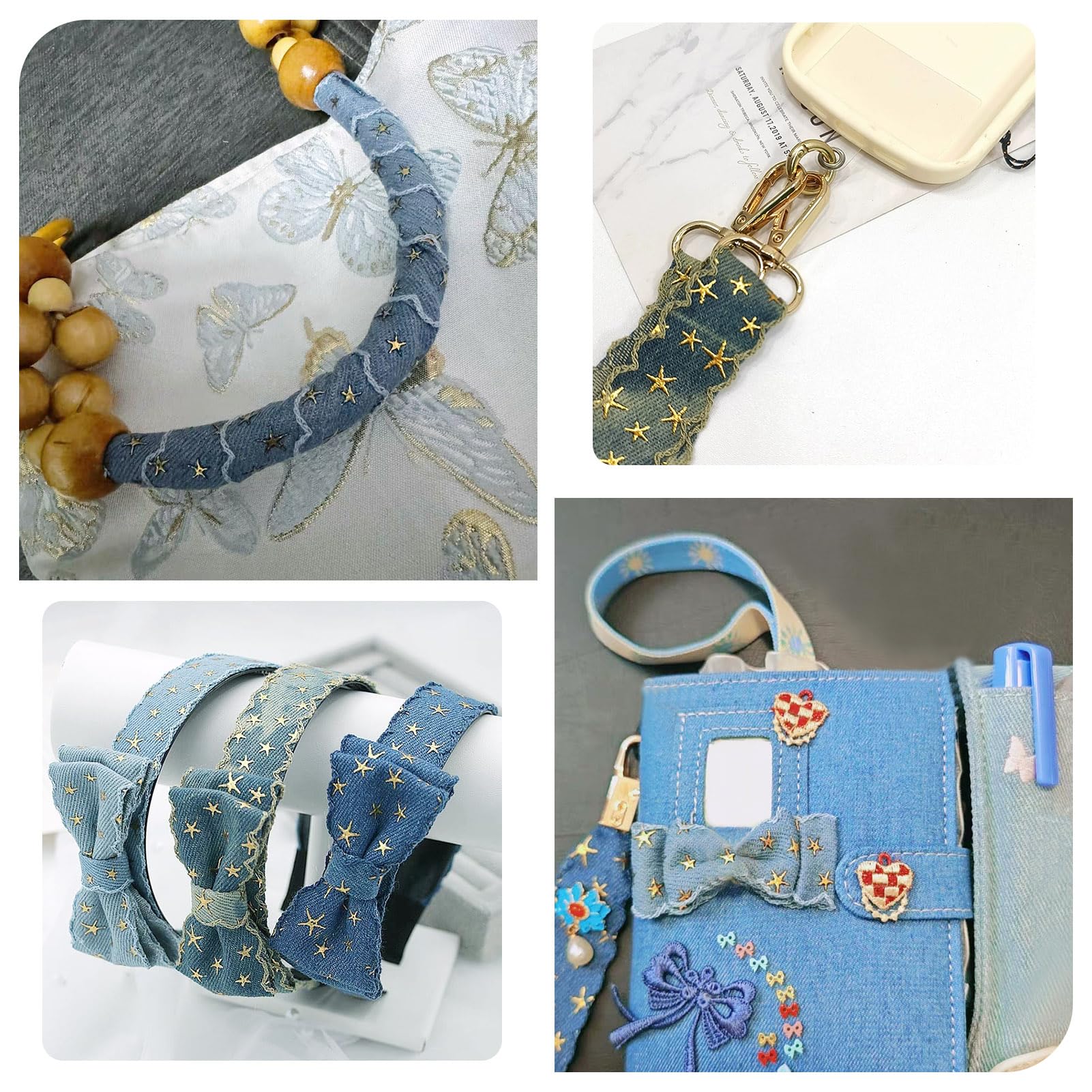 Tissu Jeans Etoiles Dorées en relief sur fond Noir - Par 10 cm What You Will Get]5 yards 3D star vintage denim cloth ribbons, about 25mm wide, 5 yards/roll [Material]These ribbons are made of premium polyester material, which sturdy and soft, colorfast and anti pilling, comfortable to touch [Design]These ribbons in vintage denim styles, with 3D star, braided edge, black color, looks classic... Vente De Ruban En Ligne Pandahall 10,9 Yards Stitch Rubans En Denim Tissu De Ruban En Denim 0,4 Pouce De Large Bandes En Denim Pour L'artisanat Vêtements De Serre-tête Jeans Arcs Et Décorations De Couture Blanc Mondial Contenu de l'emballage : vous recevrez un ruban en polyester 3D en forme d'étoile dorée de 4,6 m, environ 25,5 mm de large. Cette longueur généreuse vous... Ruban Noir et Doré Or Fantaisie Sur Fond Noir en 25 mm Couture : Ajoutez une touche élégante à vos vêtements Découvrez notre ruban noir et doré fantaisie sur