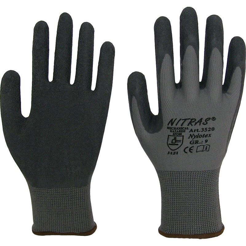 3520 // NYLOTEX – Le gant de protection léger avec une prise en main parfaite. Parfaits pour la mécanique, le jardinage, les chantiers ou même le bricolage à la maison. Taille 7 idéale pour une main moyenne. Lavables et durables, ces gants... Malgré son poids léger, il est polyvalent et robuste. NITRAS 3520 Nylotex Arbeitshandschuhe – Schrumpfgerauter Latexgriff Für Revêtement en latex antidérapant et rugueux NITRAS Arbeitshandschuhe Nylotex, 3520-10, Latex, grau-schwarz, Größe... Santex Nitriflex Black Soft Pack De 100 Gants D'examen En Nitrile Taille L Sans Poudre 186176 Doublure souple en nylon L'article 3520 // NYLOTEX a un revêtement en latex rugueux avec une prise en main particulièrement ferme.