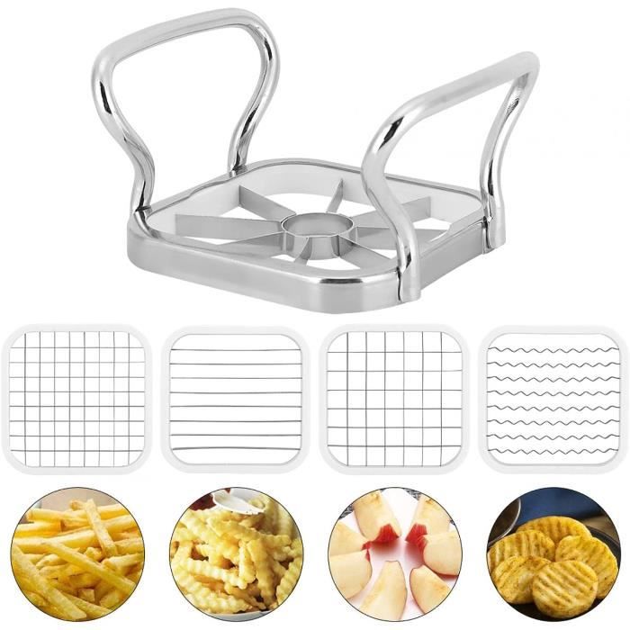 LZZEM Lot de 2 coupe-pommes en acier inoxydable - Lame dentelée - Pour fruits et légumes - Retrait facile des brins notre vide-cœur multifonction peut vous aider à le faire rapidement. Coupe Pommes de Terre Acier Inoxydable, Coupe Frite Manuel avec 2 Lame de Rechange(12mm et 9mm), Machine à Couper les Frites avec Pieds antidérapants, Trancheuse Chips Cutter pour Légumes Fruit Coupe Frites,Coupe Frite Professionnel,un Coupe-légumes Avec Deux Lames En Acier Inoxydable Idéal Pour Couper Des Pommes De Terre,des Concombres Et D'autres Légumes Et Fruits Utilisation multifonctionnelle : que vous ayez besoin de retirer le noyau des poires, cerises, dattes, dattes rouges, etc. Pour équeuter et évider tes fruits en un clin d'œil ! Ce vide-pomme en acier inox 304 (hygiénique et durable) avec lame dentelée tranchante enlève le cœur... Facile à utiliser : notre vide-fruits est équipé d'une lame dentelée qui vous permet d'insérer le fruit confortablement. Il est facile à nettoyer et peut être utilisé pendant une longue période. Matériaux de haute qualité : chaque vide-cœur est fabriqué en acier inoxydable robuste et durable, qui ne rouille pas, ne se déforme pas et ne se casse pas facilement. Toute l'inspiration mode et les dernières tendances sont en ligne sur SHEIN.