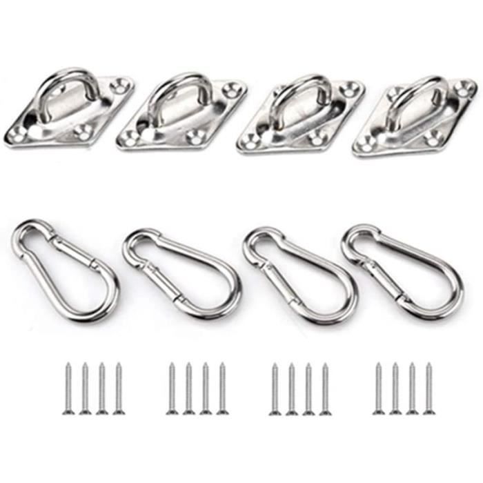 Forte capacité de charge : la capacité de charge des crochets est très forte. Plaque Acier Inoxydable Lot De 4 Plaques à œil En Acier Inoxydable - 5 Mm - Crochets Mousqueton Voile D'ombrage Épaisseur du plateau : environ 3 mm. Caractéristiques : - Fabriqué en acier inoxydable 304 de haute qualité., Charge maximale : 50 kg. ANBOO 10 Pièces Fixation Anneau d'arrimage, Pontet INOX Oeil Plaques, Crochet d'arrimage Remorque Plaque Oeillet Acier Inoxydable 304 pour Fixer des Remorques Camions Bateaux Kayaks (60 x 36 mm,M5 Lorsqu'il est correctement installé dans un endroit approprié, le crochet peut supporter environ 50 kg et n'est pas facile à casser, détacher et tomber. Remarque : veuillez vérifier la taille des vis et la limite du roulement de plafond avant l'achat. Abnaok Lot de 4 plaques à œil en acier inoxydable et 4 mousquetons en acier inoxydable pour fixation murale de voile d'ombrage Caractéristiques: - Fabriqué en acier inoxydable 304 de haute qualité. Charge maximale: 50 kg. Convient pour vis de diamètre 5 mm. - Ils sont parfaits comme éléments de fixation au quotidien, brillants et bien polis. - Ils peuvent être appliqués à de... Dimensions du mousqueton : 5 x 2,5 cm. - Ils peuvent être appliqués à de nombreux endroits, largement utilisés dans les cordes de plafond, auvents, hamacs et filets, sangles de résistance sportive, peut également être utilisé pour accrocher des pots de fleurs et des brochets, etc. Ils s'emboîtent et fonctionnent bien avec des cordes, des chaînes et des sangles pour une fixation polyvalente, des matériaux d'ancrage. Spécifications : Dimensions de la plaque pour les yeux : 4,5 x 1,5 x 2 cm (L x l x H). Dimensions : longueur : 4,5 cm ; largeur en forme de U : 1 cm. Contenu : 4 plaques à œil en acier inoxydable et 4 mousquetons en acier inoxydable, 8 vis et 8 connecteurs en plastique. Acier inoxydable 304 : plaque en acier inoxydable 304, solide et durable, avec polissage de surface lumineux, résistant à l'usure, à la rouille, résistant à la corrosion. Ce matériau est parfait pour de longues périodes en plein air, la technique de soudage du point de fusion assure la stabilité et la durabilité, une durée de vie plus longue.