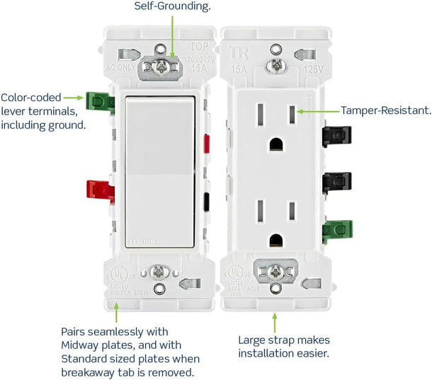 Pratique : bornes à levier à code couleur pour éviter les erreurs de câblage Pack de 3 interrupteurs à bascule 3 voies Leviton E5603-SW Decora Edge 15 ampères blanc - livraison gratuite Interrupteur 3 voies Leviton Decora Edge, 15 A, blanc, modèle E5603-W Plus sûr : pas de pièces métalliques exposées pour une sécurité accrue Leviton Decora Edge Wiring Diagram Leviton Decora Edge E5603-SW Interrupteur à Bascule 3 Voies Blanc 15 A Commutateur 3 Positions L'interrupteur à bascule silencieux Decora à trois voies de Leviton offre une installation plus rapide avec une combinaison de câblage latéral et de câblage enfichable Quickwire, ainsi qu'une construction robuste pour une longue durée de vie. 15 A, 120/277 volts, interrupteur silencieux CA, qualité résidentielle, mise à la terre... Les caractéristiques d'installation innovantes telles que les bornes à levier à code couleur (y compris la borne de terre) pour un câblage plus rapide et efficace, une sangle plus grande avec une fonction unique d'alignement de languette et de rainure pour une découpe plus rapide sur les installations multi-gangs, et aucune pièce métallique exposée pour la sécurité, rendent le levier Edge idéal pour les projets de construction de maisons neuves et MDU ainsi que les applications de rénovation. Aussi facile que de pousser., CLIQUER Terminé