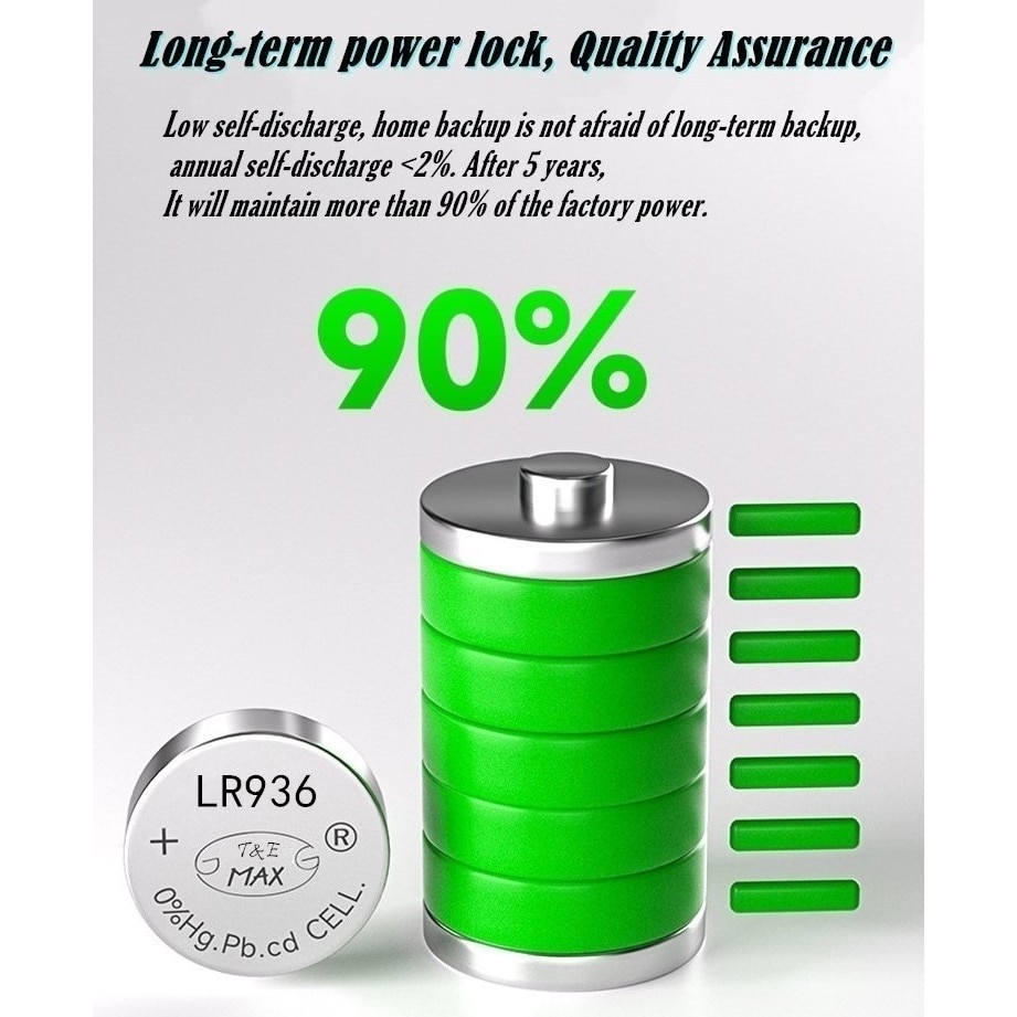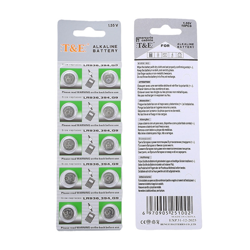 100% neuf et de haute qualité Introduction: La pile AG9 est une pile alcaline en forme de bouton avec une tension nominale de 1,55, utilisée pour les petits appareils électroniques. Pile bouton oxyde argent 1. V mAh Blister x 1 pour montre Caractéristiques: - Type de Batterie: Zn / mno2 - Tension nominale: 1.55v - Numéro de Modèle: 4NB500866 - Nom de: TCAM Certifié CE et ROHS., Sûr et fiable. ★ La pile AG9 est une pile alcaline en forme de bouton avec une tension nominale de 1,55, utilisée pour les petits appareils électroniques. Peut également être connu comme: 194, 394, 524, 280-17, 394-1W, 394A, D380, D394, G9, L936, LR936, RW33, S33, SB-A4, SG9, SP394, SR45, SR45H, SR936, SR936SW, V394., Caractéristiques: Superbes caractéristiques sur une large plage de températures. Le code de date d'expiration MM-AAAA est indiqué au dos de la carte. ★ Fournir une longue durée de conservation à des fins énergétiques de secours ensemble. Idéal pour les pointeurs laser, les bâtons lumineux LED, les appareils photo, les jouets, les jeux, les conversations livres, calculatrices, horloges, montres, lecteurs Hit Clip, briquets, appareils d'exercice, etc. Peut également être connu comme: 194, 394, 524, 280-17, 394-1W, 394A, D380, D394, G9, L936, LR936, RW33, S33, SB-A4, SG9, SP394, SR45, SR45H, SR936, SR936SW, V394., ★ Testé selon des normes strictes de contrôle de qualité. Pile 2032 VAILANG 10 Pièces Pile Alcaline AG9 1,55 V Bouton Pile Bouton Montre Pili Pili Pile bouton au lithium AG9 / LR45- 1.5V (10 pièces). 10 piles bouton alcalines AG9 dans un emballage blister. Les piles bouton sont emballées... 10 Pcs Batterie Alcaline Pile Alcaline De Rechange Pile Bouton AG13 A76