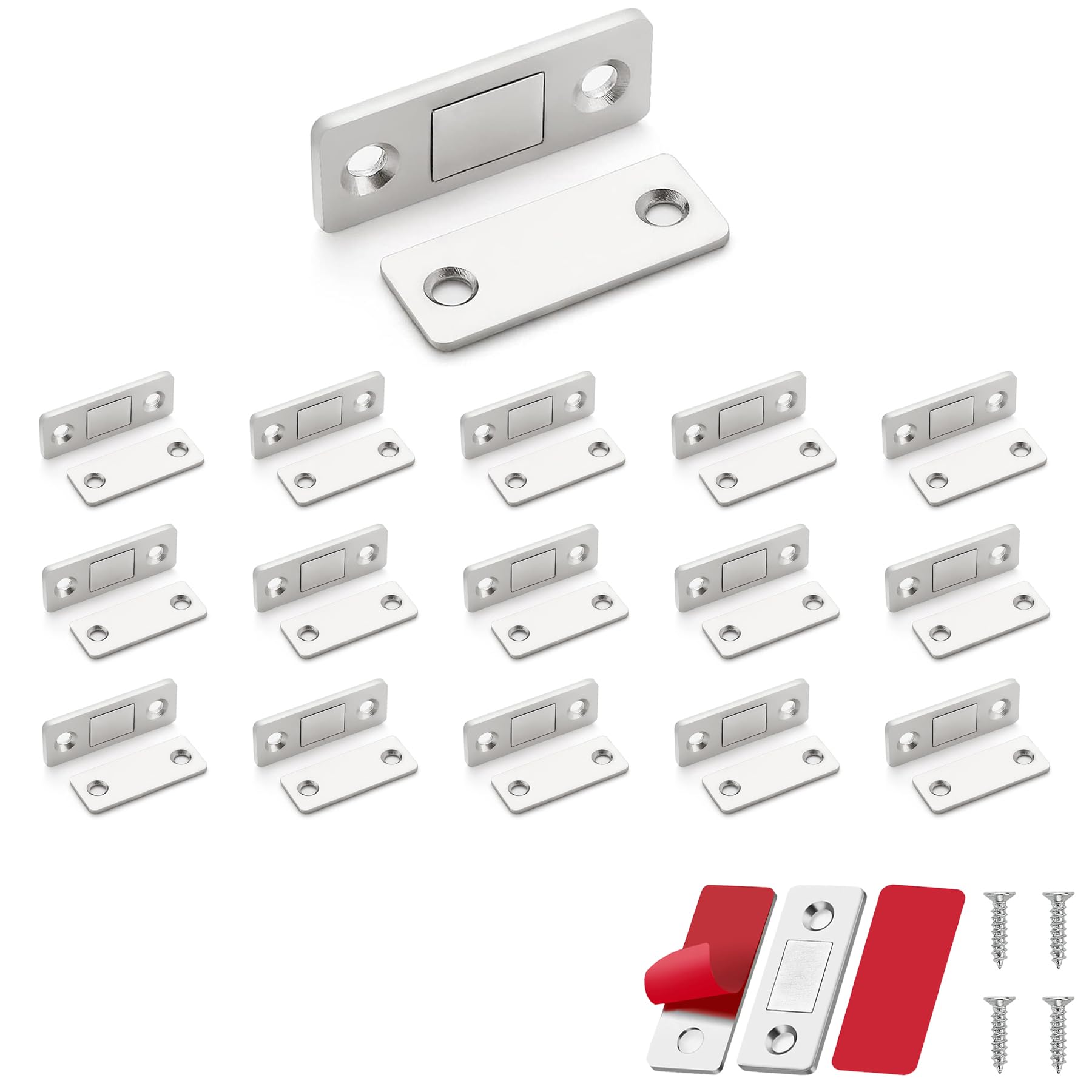 Caractéristiques : Matériau : acier inoxydable et aimants puissants., Couleur : argenté. Loquets magnétiques pour portes d'armoires, lot de 10, ultra Idéal pour porte de garde-robe, tiroirs, porte d'armoires, commodes, porte de placard, etc. Installation facile, aimant Ultra fin et puissant, robuste... Design ultra fin : cet aimant de porte a une épaisseur de seulement 3 mm, il n'y aura pas d'espace de porte évident après l'installation, économise de l'espace et esthétique, n'endommagera pas les meubles. Matériaux de haute qualité : vous recevrez 16 aimants d'armoire, 32 adhésifs double face et 64 vis. Contenu : 16 loquets de porte magnétiques. Nous vous invitons à fournir de précieux commentaires sur notre produit et nous vous envoyons nos meilleurs vœux. Largement applicable : ce type d'aimants de porte pour armoires est largement utilisé, y compris la maison, le bureau et le magasin. 32 adhésifs double face., 64 vis. Magnétisme puissant : l'aimant au milieu de la porte de placard peut adhérer fermement les uns aux autres et ne se desserrera pas. Aimant puissant pour portes d'armoires, lot de 4 aimants de porte ultra... Lot De 16 Loquets Magnétiques Ultra Fins Pour Portes D'armoire Convient pour les portes d'armoire, les portes coulissantes, les tiroirs ou les boîtes à bijoux, les armoires de cuisine, les fenêtres, les armoires et autres meubles de maison.