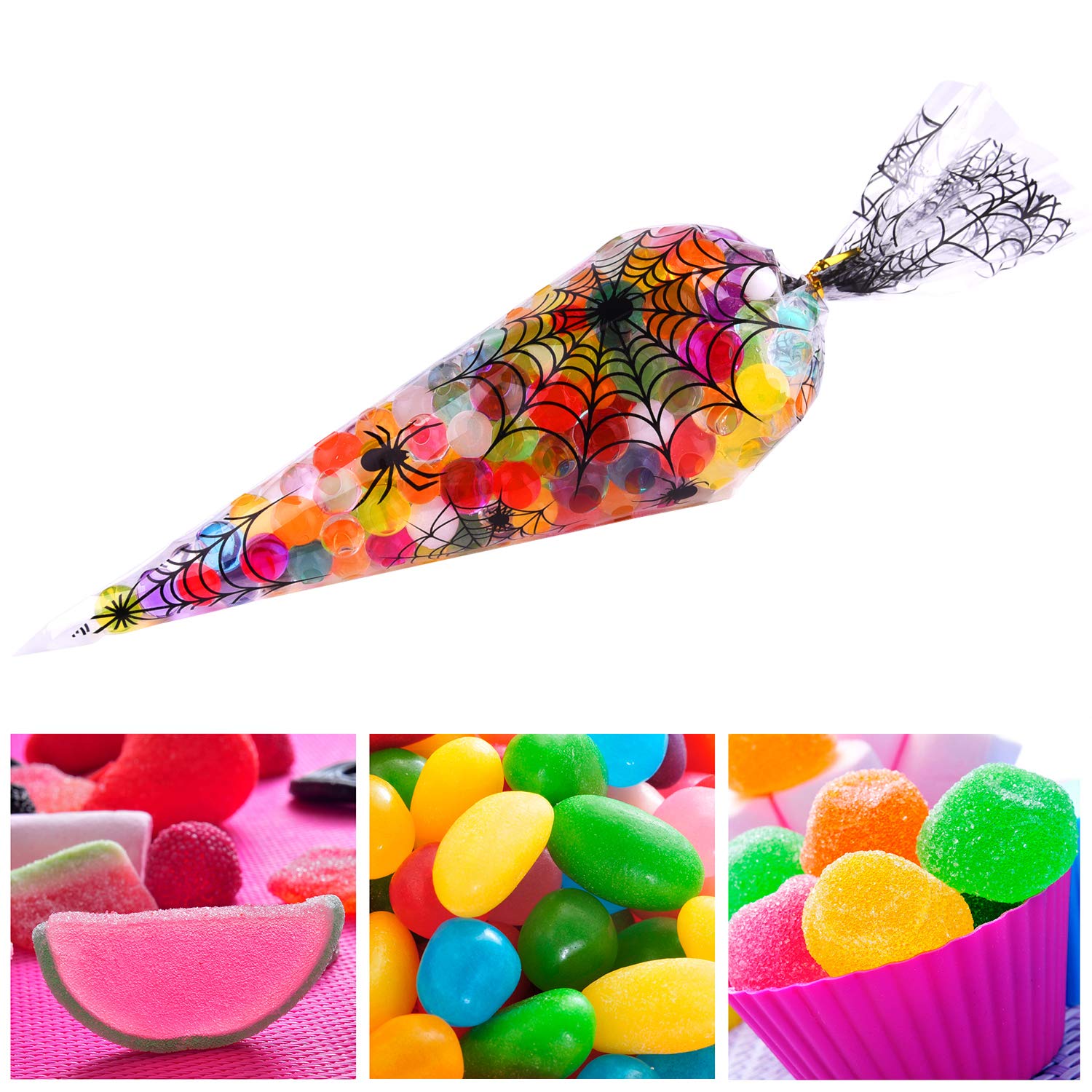 Conception unique: ces sacs en cellophane sont conçus avec un motif en toile d'araignée, les sacs de traitement en forme de cône aident à bien afficher le filet d'impression en toile d'araignée 100 Compte Spider À Motif Halloween Cône Cellophane Sacs Traiter des... Application: bon pour stocker des bonbons, des jouets, des collations, des chocolats et autres cadeaux, ces sacs en cellophane pour la décoration de fêtes d'Halloween et leur utilisation Matériau: ces sacs à cône transparent sont en polyester, faciles à insérer ou à retirer des bonbons, faciles à manipuler pour les enfants Celebration Chocolat MIAHART 100 Compte Spider À Motif Halloween Cône Cellophane Cône Polystyrène Ledoo Sacs à Cône Transparent, 300 Pcs Sachet de Bonbon pour Stockage de Nourriture tel Que Fonctionnalités: Sacs de cellophane à cône en toile d'araignée MIAHART 100 avec cravate torsadée en or de 100 pièces pour un cadeau idéal pour la fête d'Halloween. Ces sacs de bonbons ou de gâteries d'Halloween conviennent aux cadeaux, aux bonbons ou à d'autres emballages-cadeaux.