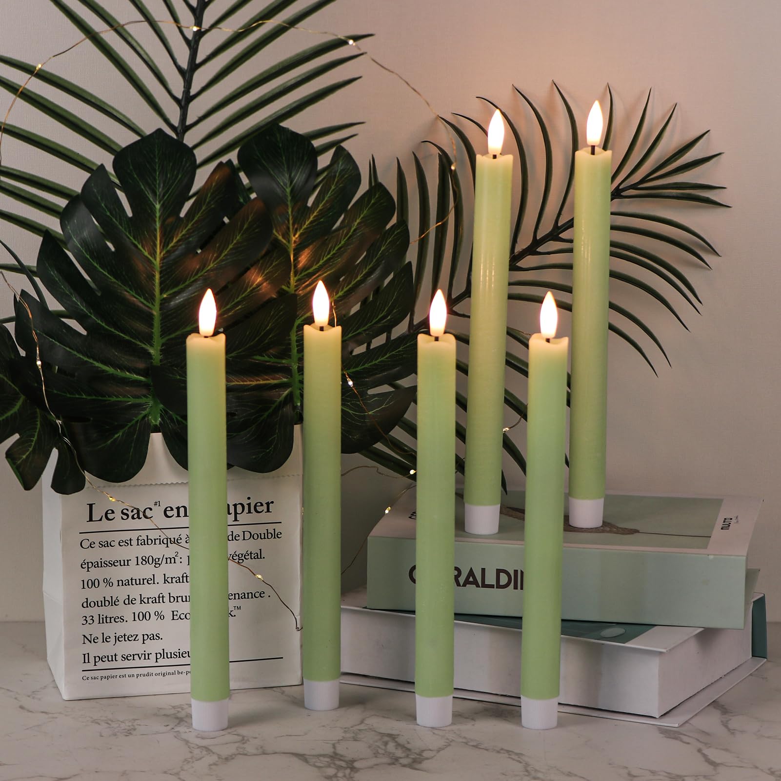 Étapes d'utilisation : < 1 Chaque bougie conique nécessite 2 piles AA., Piles non incluses. Et se rallumera automatiquement à 16h00 le jour suivant, cycle toutes les 24 heures. Notre croyance : Nous devons garder la romance continue. 1 télécommande à 10 touches N'essayez pas d'allumer cette bougie. Derrière chaque forme rituelle se cache une expression d'amour. Télécommande et minuterie : facile et pratique pour contrôler toutes les bougies coniques réalistes fonctionnant avec des piles marche/arrêt, minuterie, scintillement, luminosité avec télécommande à 10 touches. Nous pensons également que chaque confiance ne devrait pas être laissée, c'est pourquoi nous cherchons à offrir une meilleure qualité, créer des produits plus chauds avec l'âme et le but. Contenu de l'emballage : vous recevrez 2 bougies coniques LED blanches en cire véritable (2,9 cm de profondeur x 24,1 cm de hauteur), une télécommande à 10 touches et un manuel de l'utilisateur (français non garanti). 1 manuel d'utilisation (français non garanti) Notre garantie : chaque bougie conique sans flamme a été soigneusement testée avant de quitter notre usine. <3 Appuyez sur l'interrupteur en bas pour contrôler la bougie. Télécommande 10 touches Très facile et pratique à utiliser., ! Lot de 3 Bougies LED sans flae à piles, Bougie Décorative Flae Facile à utiliser : chaque bougie conique vacillante nécessite 2 piles AA (non incluses), pas besoin de vous soucier de la fumée ou des gouttes de cire, sûre et propre pour vos enfants et animaux de compagnie. Bougies à Led Eldnacele Lot De 6 Bougies LED Sans Flamme, En Cire Véritable Bougie Flottante Nous espérons que vous apprécierez nos bougies sans flamme Cette bougie est en cire véritable et est inflammable. Eldnacele Bougies sans flamme à mèche mobile avec minuterie à distance Conseils : ! Quatre modes de minuterie différents peuvent répondre à vos différents besoins, une fois la minuterie réglée, cycle toutes les 24 heures. Minuterie : Mode minuteur 2/4/6/8h. Par exemple, si vous réglez la minuterie de 6 heures à 16 heures, ces bougies sans flamme s'allument pendant 6 heures et s'éteignent automatiquement à 22 heures. La seule chose pire que de passer par les mouvements est de ne pas gêner de passer par les mouvements. À côté de tous les accessoires de la maison ou des décorations florales : la lueur chaude et l'aspect blanc simple peut ajouter des points supplémentaires à n'importe quel accessoire de maison. Lot de 3 Bougies LED sans flae à piles, Bougie Décorative Flae...