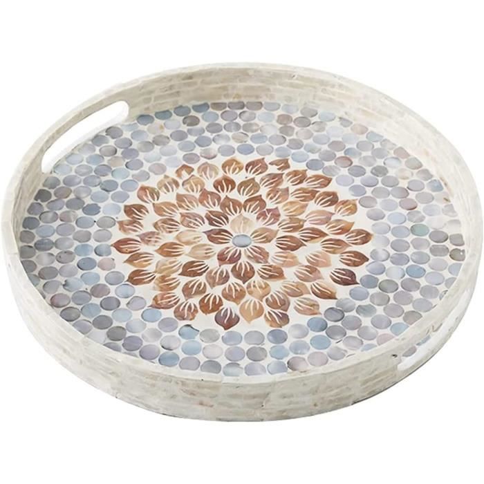 Hanobe Plateau Decoratif Bois Grand : XXL Rond Plateaux De Service Decor Pour Table Basse Placage De Noyer Chic Plateau Moderne Deco Pour Cuisine Ottoman, 45cm