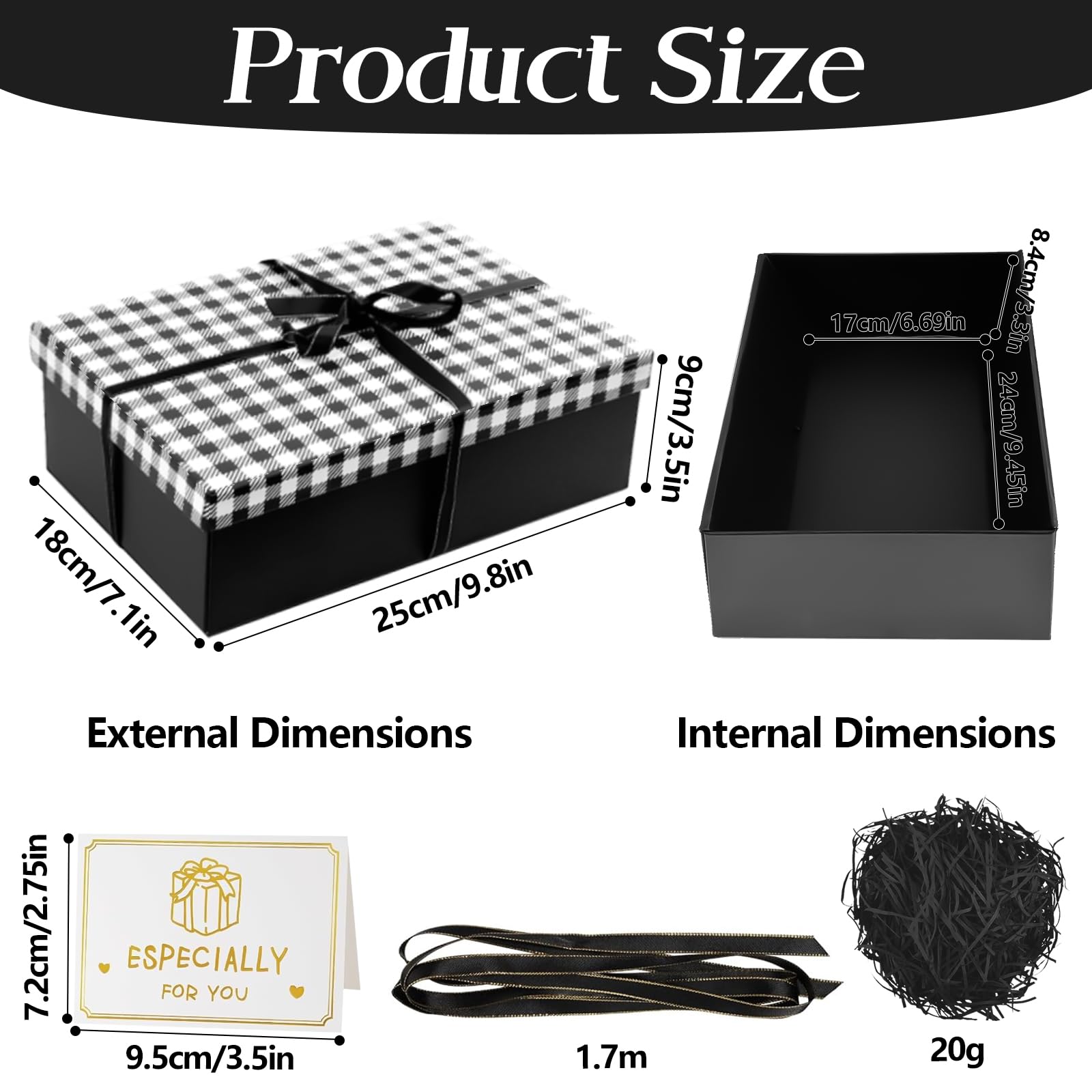 L'élégant rembourrage en raphia rehausse l'attrait visuel et la présentation. 【Design luxueux】 Ce coffret présente un élégant nœud papillon (boîte cadeau noire à carreaux en diagonale) qui ajoute une touche de sophistication à vos cadeaux. Le couvercle hermétique assure la sécurité du contenu. Le raphia déchiqueté et la carte de vœux inclus améliorent la présentation. Boîte d'aquarelle de voyage légère, parfait pour un cadeau Boite Cadeau Noir Boîte Cadeau Rectangulaire Avec Couvercle, Nœud Et Carte De Vœux, 25 X 18 X 8,8 Cm, Pliable, Pour Anniversaire, Fête, Mariage, Noël (blanc Boite Cadeau Vide Noel 【Assemblage facile】 Livré à plat pour un rangement peu encombrant : il suffit de décoller, de plier et de fixer le carton en quelques secondes ! Mesurant 25 x 18 x 8,5 cm (9,8 x 7,1 x 3,3 pouces), ce coffret polyvalent offre un espace généreux pour vos bijoux, montres, parfums, souvenirs ou autres cadeaux précieux. Parfait pour : Montres de luxe et bijoux raffinés. 【Parfait pour toutes les occasions】 Idéal pour les anniversaires, les mariages, la Saint-Valentin, Noël, le Nouvel An et bien plus encore. Boite Cadeau Vide, Boîtes Cadeaux avec Couvercle 25 x 18 x 8,5 cm, Emballage Cadeau Boite avec Cartes de Vœux Ruban Raphia, Cadeau Boîte Pliable pour... Le carton épais, lisse et de haute qualité, assure durabilité et un toucher luxueux. → Convient aux cadeaux masculins et féminins. → Conception réutilisable pour un cadeau éco-responsable. Coffret Cadeau avec Couvercle, 25 X 18 X 8,5 cm, BoîTe Cadea Remarque : Les cadeaux photographiés sont uniquement à des fins d'exposition. Transformez des cadeaux ordinaires en souvenirs extraordinaires avec ce coffret cadeau élégant et de qualité supérieure qui témoigne de votre goût et de votre attention. ✔ Savoir-faire haut de gamme: Fabriqué en carton haute densité pour une durabilité sans compromis sur l'élégance. Caractéristiques premium : ✔ Design contemporain à carreaux: Son motif à carreaux noirs en diagonale crée une déclaration audacieuse et tendance. Montage en quelques secondes grâce à un simple pliage. 【Spacieux et polyvalent】 Convient à une grande variété de cadeaux, des bijoux, cosmétiques et accessoires aux vêtements, livres et jouets. Une façon attentionnée de témoigner son amour, sa gratitude ou de célébrer avec style !