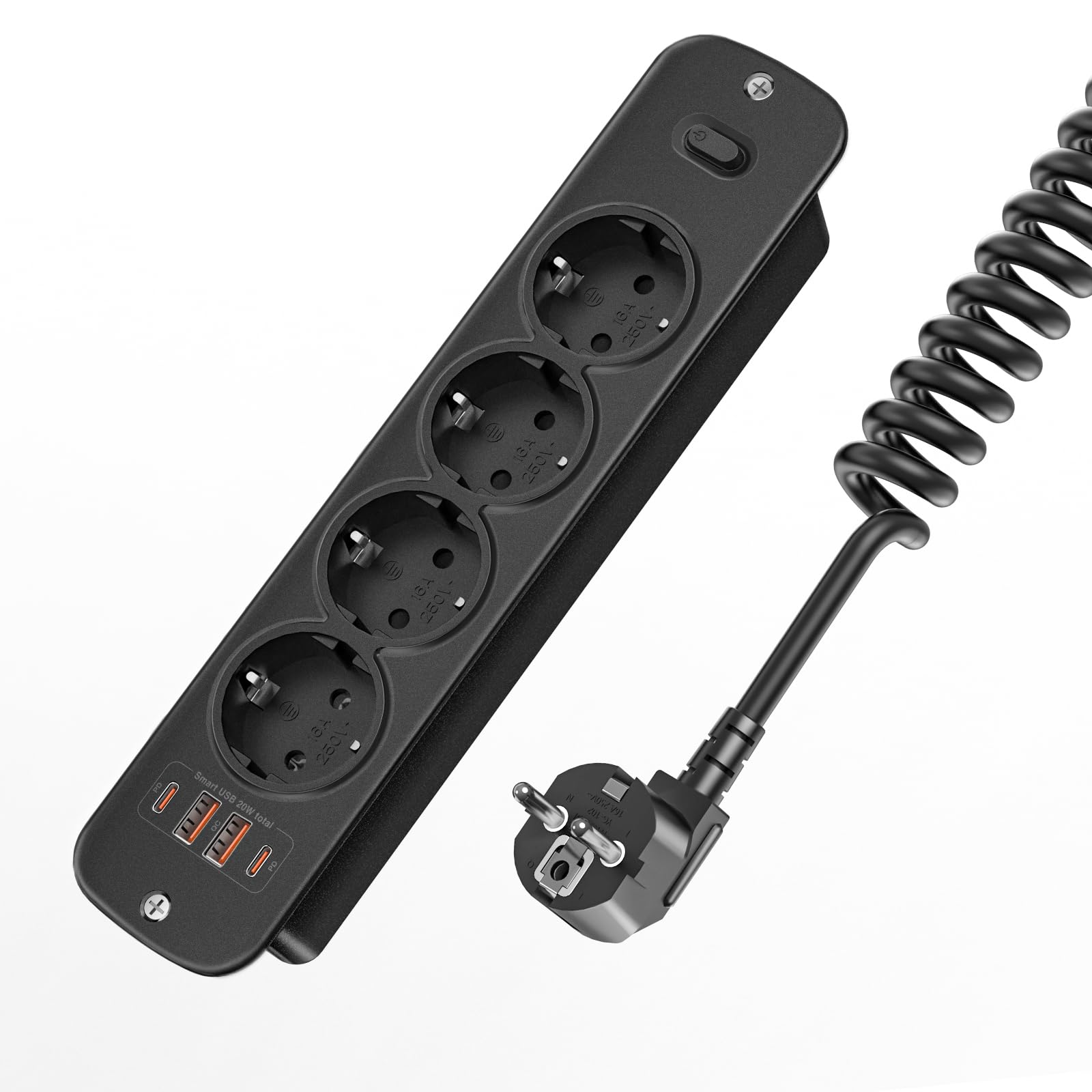 Si deux ports ou plus de notre multiprise USB sont utilisés simultanément, une répartition intelligente de la puissance de sortie pour chaque port est effectuée afin de garantir efficacement et rapidement la charge de vos appareils. Sécurité et durabilité maximales : notre prise encastrable escamotable est fabriquée à partir de matériaux ignifuges et a un design complet en cuivre. L'installation est simple : placez la planche à mesurer à l'endroit souhaité, marquez le contour et percez des trous en fonction de la longueur du tube d'expansion. Multiprise Escamotable, Prise Encastrable Plan de Travail 4 Prises 2 La prise de distribution avec USB est idéale pour différentes pièces telles que le salon, la cuisine, l'école, le dortoir ou le bureau. Contenu de l'emballage : une multiprise avec interrupteur, l'interrupteur peut économiser sur les coûts d'électricité. Multiprise De Bureau Escamotable, Prise Rétractable 3 Prises Avec 2 Usb... 5 serre-câbles aident à éviter les enchevêtrements de câbles. 2 ensembles de vis de différentes longueurs qui vous offrent une variété de choix pour l'épaisseur de la surface à fixer. Cela protège efficacement vos précieux appareils même par temps fort comme les orages et peut vous éliminer efficacement les risques de sécurité inutiles. Insérez le tube d'expansion, alignez les trous de montage de la prise, fixez la multiprise avec des vis dans le tube et utilisez des clips de fixation transparents pour organiser les câbles d'alimentation le long du mur et ainsi éviter les câbles désordonnés. Multiprise à charge rapide avec câble de 2 m : 2 ports USB-A, qui peut supporter jusqu'à max. un courant de charge de 2,4 A. 2 ports USB-C qui offrent une charge rapide PD 20 W. La prise CA à 4 prises a une puissance élevée allant jusqu'à 3840 W (max. 240 V, 16 A) et peut charger rapidement plusieurs appareils en même temps Multiprise Connectée Prise Escamotable 3 Prises USB C Avec Chargeur Sans Fil 10 W, Ohuo 2 Rallonge Electrique 2m Il offre une fonction de protection complète, y compris la protection contre les surcharges, les surtensions, la foudre et les courts-circuits.