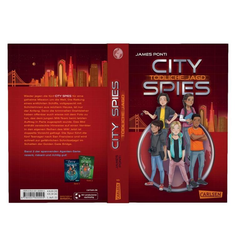 James Ponti: City Spies: Tödliche Jagd City Spies 2: Tödliche Jagd. Actionreicher Spionage Thriller für Jugendliche. Carlsen. ISBN 978 3 551 32099 5. Zur Nachauflage. Zur Vorauflage. Standardpreis. 8... City Spies 2: Tödliche Jagd | James Ponti | Taschenbuch | 978-3 Neuware - Diese 5 Spy Kids habens drauf: ein starkes Team, eine actiongeladene Story, ein Riesenspaß!Wieder jagen die City Spies für eine geheime Mission um die Welt. Die Rettung eines entführten Schiffs, vollgepackt mit Schülerinnen aus reichem Hause, ist nur der Anfang
