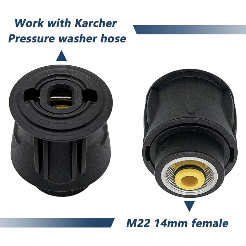 Description : * Produit de haute qualité., Contenu : 1 attelage., Remarque : 1., La couleur réelle de l'article peut être légèrement différente de celle des photos présentées sur le site Web en raison de nombreux facteurs tels que la luminosité de votre écran et la luminosité., 2., Les mesures étant prises à la main, les tailles indiquées peuvent varier légèrement. Adaptateur M22 pour nettoyeur haute pression à connexion rapide - Adaptateur de tuyau pour Karcher. Matériau : laiton massif. 44700410 Raccord rapide haute pression pour KARCHER ADAPTATEUR M22 POUR rapide et conversion du tuyau de tuyau de lavage... Femelle 3 8 Mâle Embout Aspirateur Karcher DAZZLEEX Adaptateur M22 Pour Nettoyeur Haute Pression - Karcher - Laiton 220 Bar Raccord Rapide Lance Karcher Charge maximale : Pression : 220 bar p3200 psi.