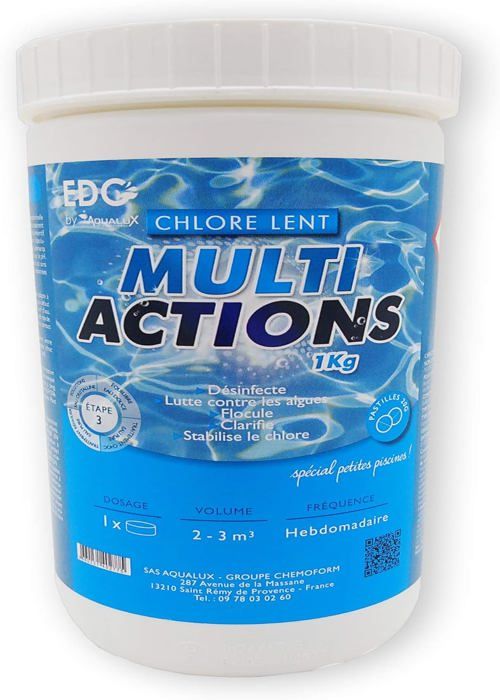 Le chlore multiactions en pastilles de 20g est spécialement conçu pour le traitement de l'eau de piscine. Ce produit, proposé par la marque EDG by Aqualux, est... Description du produit EDGACCESS propose une gamme de produits conçus pour sécuriser, organiser et équiper vos espaces intérieurs et extérieurs. EDGACCESS s’engage à offrir des solutions pratiques pour répondre aux besoins de chaque utilisateur. CHLORE RAPIDE - Pastilles de 20G - Boîte de 1 Kg- EDG BY AQUALUX Chlore Piscine Aqualux Chlore Multi-actions Pastilles 20 G - 1 Kg Au Meilleur Brome Pastille 💦 Produit stabilisé : limite la dégradation du chlore actif par les UV ☀️ 🚚 Livraison Gratuite 💦 Edenéa une équipe française 🇫🇷 à votre service 🛎️ 💦 Nos produits sont utilisable aussi bien en SPA qu'en piscine 💦 3 Actions en 1 : Désinfection Longue Durée, Anti-Algues, Clarifiant Avant toute utilisation, lisez l'étiquette et les informations sur le produit Clause de non-garantie Utiliser les produits biocides avec précaution. EDG by AQUALUX INTERNATIONAL - Chlore Multi Actions Piscine - Pastilles 20g - Traitement Longue Durée Désinfectant Multi Fonction3 Actions en 1 : Désinfection Longue Durée, Anti-Algues, ClarifiantProduit stabilisé : limite la dégradation du chlore actif par les UV ☀️Désinfectant à haute concentration en matière active AjouterDétails Que ce soit pour le rangement, l’aménagement ou la protection, la marque se distingue par des articles fonctionnels, robustes et pensés pour durer.