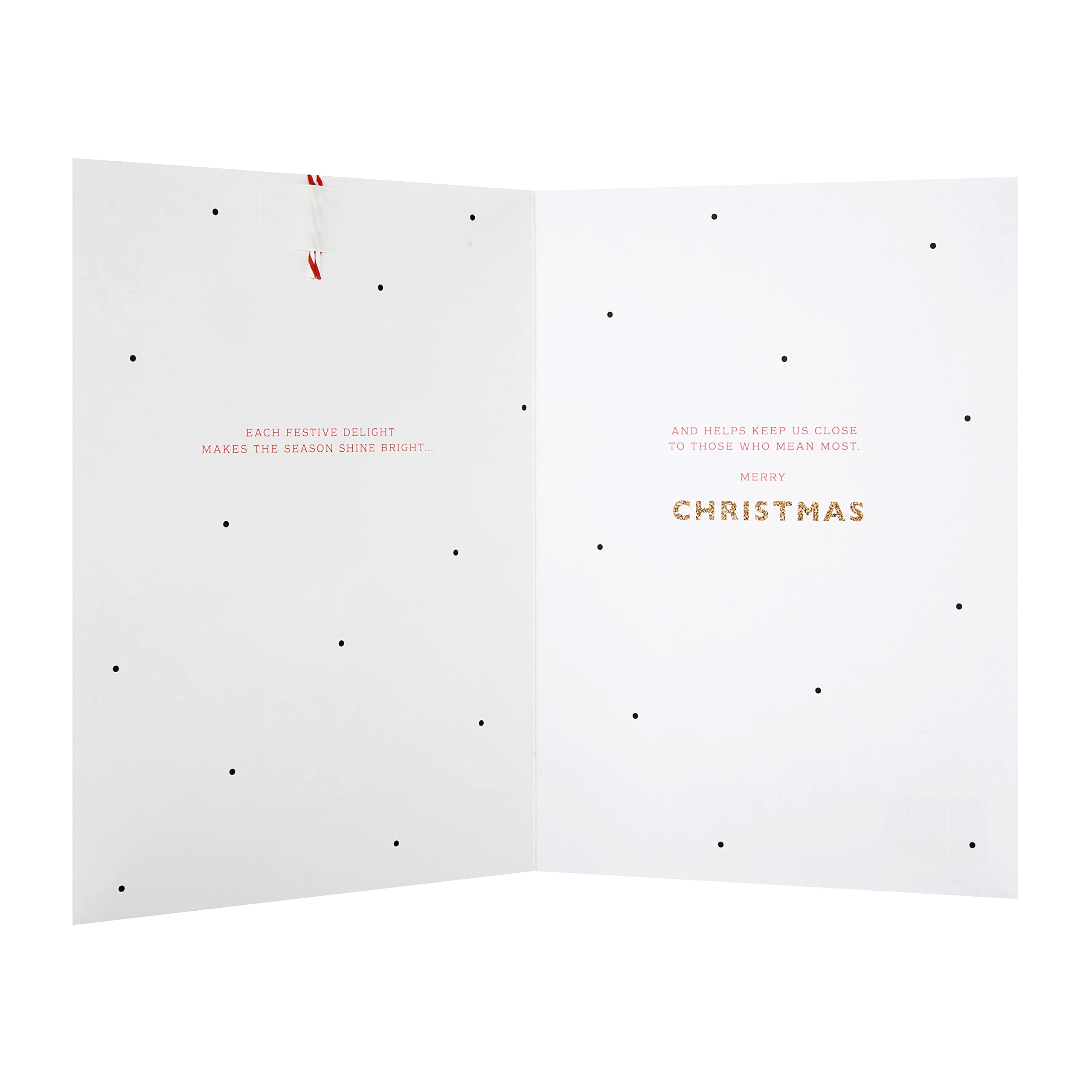 Fabriqué à partir de matériaux issus de forêts bien gérées, certifiées FSC et d'autres sources contrôlées ; détails en feuille d'or ; attache cœur effet 3D ; pompon marron doré Livré avec une enveloppe assortie à motif flocon de neige, marque Hallmark Dimensions : 20,2 x 13,8 cm, dans les limites de taille standard britannique Description du produit Noël est le moment idéal pour célébrer les personnes spéciales dans notre vie, alors faites savoir à quelqu'un combien ils comptent vraiment avec cette carte frappante de Hallmark. Avec un design frappant, en relief, avec un lettrage et des détails en feuille d'or, un lettrage et des détails pailletés dorés, et un message de Noël chaleureux et attentionné... Souhaitez à une sœur spéciale le moment de Noël qu'elle mérite avec cette jolie carte de Hallmark. Fabriqué à partir de matériaux issus de forêts bien gérées, certifiées FSC et d'autres sources contrôlées, éléments en relief, lettrage et détails de design en feuille d'or ; étiquette décorative à effet 3D ; accessoires... Gilmore Girls Hallmark Carte De Félicitations De Mariage Spécial Couple – Motif En En Ligne Bonjour Salutation Ou Mot De Bienvenue Pour Accueillir Quelqu'un Ou