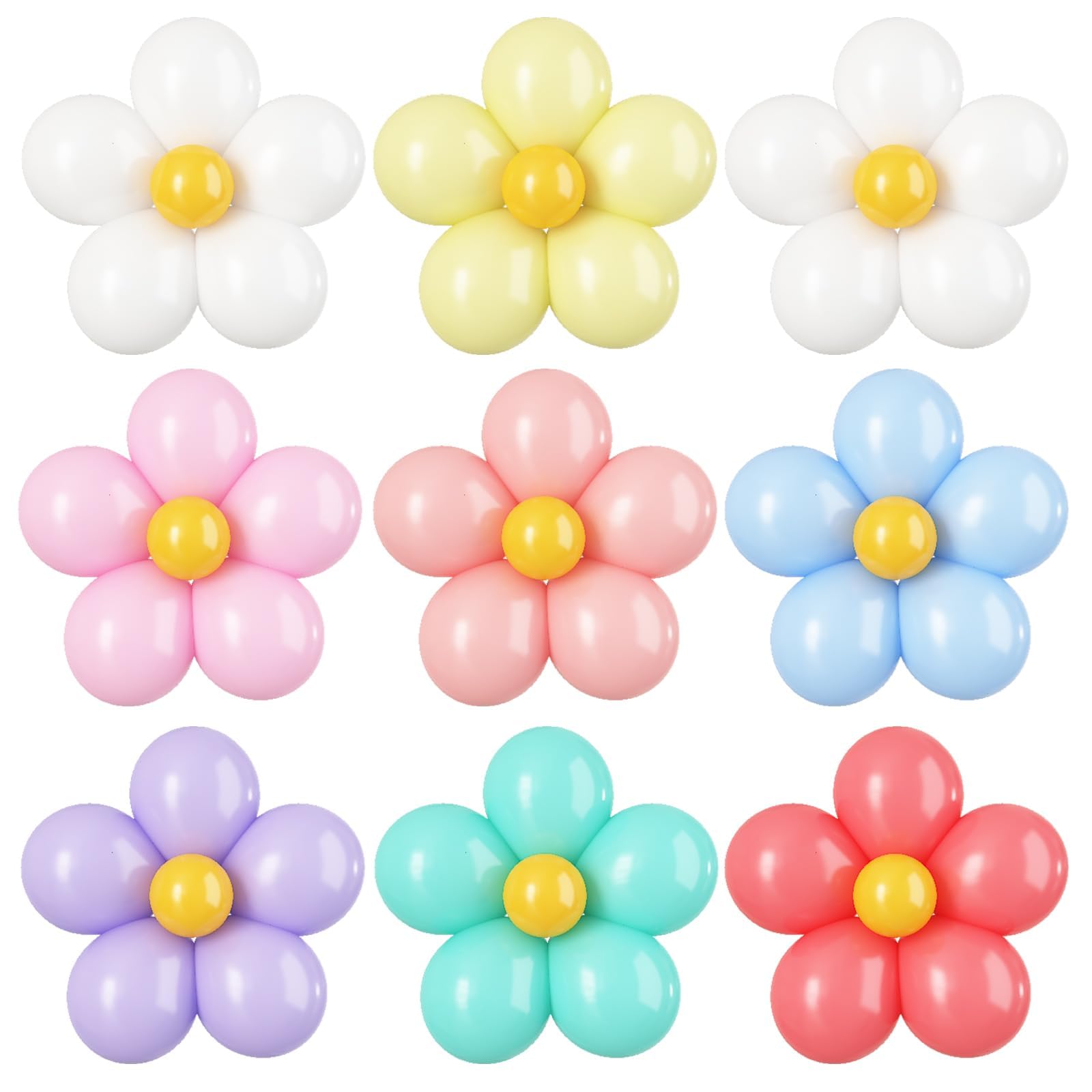 Kit de ballons roses et blancs avec divers ballons colorés, peut être utilisé pour fabriquer différents ballons à fleurs en marguerite pour votre fête Contenu de l'emballage : Ballons en latex rose clair de 80 x 25 cm. Enfin, ajustez la position de chaque ballon et fixez-les avec des points adhésifs. Comment faire des ballons marguerites : tout d'abord, gonflez 5 ballons de 25,4 cm et 1 ballon de 12,7 cm avec 80 % de plein, et nouez-les. Kit d'arche de ballons rose vif, guirlande de marguerites roses et 121 pièces de guirlande de ballons de marguerite rose, Kits d'arche pour décoration de fond de mariage, ballons de douche de bébé, fête d'anniversaire... Kit D'arche De Ballons En Forme De Marguerite, Style Rétro, Hippie, Bohème, Blanc, Jaune, Guirlande De Ballons Marguerites Pour Anniversaire, Fête Prénatale, Mariage, Décorations De Fête Kit de bricolage de ballons marguerites : le colis comprend 60 ballons en latex de 25,4 cm (30 rose clair, 30 blancs), 12 ballons en latex jaunes de 12,7 cm (6 rose clair, 6 blancs), 12 clips en forme de fleur de prune, et 1 rouleau de 100 points adhésifs. Ce sera un design unique pour une fête inoubliable sur le thème des marguerites. Ensuite, un beau ballon marguerite est terminé. Deuxièmement, faites le nœud du ballon à travers chaque fente dans le clip en forme de fleur de prune. Utilisez la créativité pour décorer : il y a de nombreux ballons colorés à utiliser pour fabriquer les ballons en forme de marguerite.