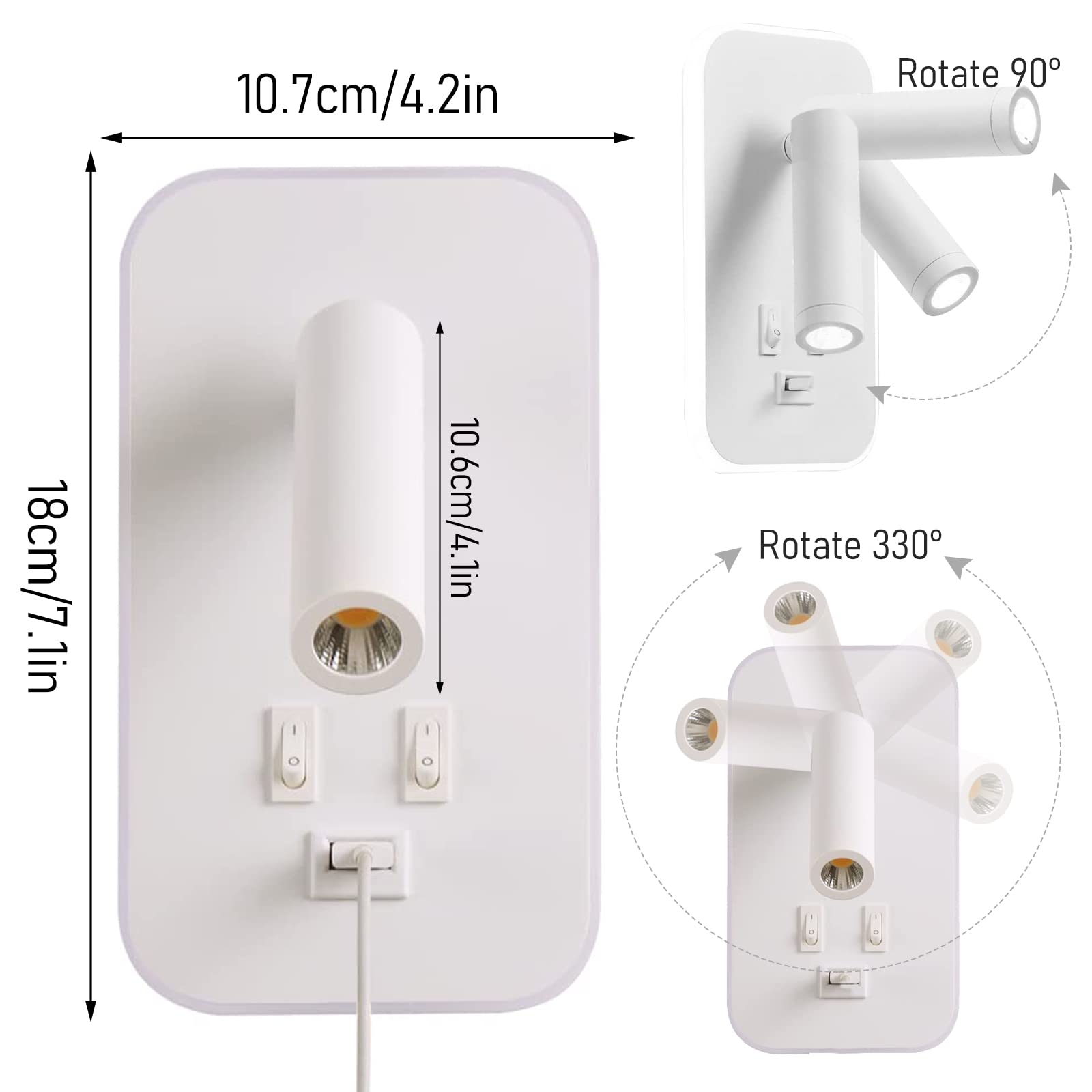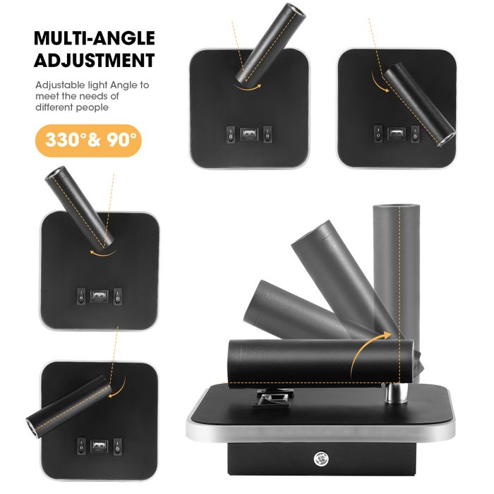 Vous n'avez pas besoin de beaucoup de lumière, mais plongez dans votre propre monde de lecture. Cette applique a une lumière chaude, douce et sans scintillement, le rétroéclairage peut être utilisé comme veilleuse et l'abat-jour en acrylique sur le côté du corps de la lampe offre un confort d'éclairage nocturne. Avec 5V/2A, vous avez besoin d'un chargeur complet avec accessoires. Les perles de la lampe ne sont pas suffisamment lumineuses pour votre zone cible. Liseuse de chevet rotative. Projecteurs réglables à n'importe quel angle La lumière col de cygne a un projecteur flexible, vous pouvez régler l'angle comme vous le souhaitez 2PCS Applique Murale Interieur LED, Liseuse de Chevet avec interrupteur, port de charge USB, Rotation à 360°Liseuses Murales, 3000K Lampe de Lecture de Chevet... Le rétroéclairage peut être utilisé comme veilleuse et l'abat-jour en acrylique sur le côté du corps de la lampe fournit un éclairage confortable la nuit. Commutateur indépendant : la lampe de lecture 3 W et le commutateur de rétroéclairage 9 W sont contrôlés indépendamment, vous pouvez lire librement sans déranger les autres. Le corps de la lampe en aluminium est plus résistant à la corrosion, difficile à rouiller et à se décolorer, ce qui rend cette applique plus durable et fiable. Veilleuse Cosy : Cette applique est une perle de lampe chaude, douce et non scintillante, elle peut être ajustée selon l'occasion et le besoin, créer des ambiances différentes. Towwoo Liseuse de Chevet, Applique urale LED avec Interrupteur et Port Liseuse Lampe De Lecture Applique Murale LED, Liseuse De Chevet Avec Interrupteur, Port De Lampe Murale Sans Fil Vous pouvez lire librement sans déranger les autres.