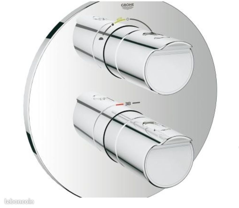 GROHE StarLight Un chrome éclatant comme un miroir qui résiste durablement aux chocs et à la corrosion. Description du produit GROHE Façade pour Mitigeur Thermostatique Encastré Douche Grandera 19932000 (Import Allemagne) Clause de non-garantie La garantie GROHE, dans l’hypothèse où elle est acceptée par les services GROHE, se limite à la réparation (ou au remplacement à l’identique, sur décision de GROHE France), ou à équivalent des matériels ou pièces que nous avons reconnus défectueux, à l’exclusion expresse de tous frais accessoires (particulièrement le démontage et remontage) et dommages directs et indirects (notamment ceux consécutifs à une privation de jouissance des installations). GROHE 19932IG0 Grandera Façade Mitigeur Douche Argent livré sans le corps encastré etanchéité rosace et queue , rosace métallique , fixation dissimulée Façade grohe douche thermostatique grotherm 2000 - Bricolage grohe starlightchrome éclatant et durable Grandera™ Mitigeur hors-sol Le mitigeur hors-sol offre une grande liberté de conception dans votre salle de bains et vous permet de choisir l'emplacement exact de votre baignoire, vous laissant une liberté sans compromis dans la planification de votre salle de bains. Quant à la technologie SilkMove®, elle garantit un angle de fonctionnement extra-large vous permettant de gérer... - Un réglage précis du levier permet de réelles économies d'eau et d'énergie - Injection de graisse silicone en téflon qui réduit jusqu'à 15 fois le frottement. Apportant élégance, classique revisité et intemporalité, le style de la collection complète Grandera offre un style harmonieux à votre espace bains. GROHE Façade pour Mitigeur Thermostatique Encastré Douche Grandera 19932000 (Import Allemagne) : : BricolageNous nous efforçons de protéger votre sécurité et votre vie privée. Notre système de paiement sécurisé chiffre vos données lors de la transmission. Nous ne partageons pas les détails de votre carte de crédit avec les vendeurs tiers, et nous ne vendons pas vos... Mitigeur thermostatique de douche encastré sans corps 2 sorties, permettant la commutation entre la douche de tête/la douchette, éventuellement entre la douche/la baignoire support intégré pour douche GROHE QuickFix rosace dissimulée métallique avec joint d’étanchéité, fixation dissimulée, réglable ±6° GROHE StarLight finition GROHE SmartControl touche ON-OFF, réglage du débit depuis EcoJoy jusqu’au débit maximal Full Flow symboles interchangeables cartouche compacte avec élément thermostatique GROHE SafeStop butée de sécurité à 38°C GROHE SafeStop Plus limiteur de température optionnel à 43 °C clapets anti-retour intégrés et filtre à impuretés les sorties peuvent être utilisées simultanément débit : sortie B = 24 l/min, douchette = 12 l/min montage sur corps encastré GROHE Rapido SmartBox (non inclus) - La souplesse du levier reste intacte, même après 200 000 La collection GROHE Grandera est un mélange subtil d'un savoir-faire de haute qualité et de l'amour du détail et du confort.