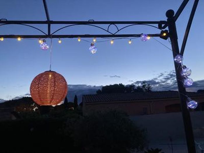 Idéal pour décorer votre jardin, terrasse, pelouse, porche, portail, cour, etc. ★ Imperméable et durable ★ Étanchéité IP65, adaptée pour le jardin, la terrasse, la pelouse, le porche, le portail, la clôture, la cour, etc. Lampes solaires en forme de goutte d'eau ☆ Lumières parfaites pour tout type de décoration qui a besoin d'une lumière. · Facile à installer Veuillez sélectionner l'endroit approprié pour l'installation. Le non-respect de cette règle peut entraîner des dommages au produit., 2., Il est conseillé de charger complètement le panneau solaire pendant 8 heures lors de la première utilisation., 3., Retirez le film protecteur sur le panneau solaire, ajustez l'angle du panneau solaire pour vous assurer qu'il peut recevoir un maximum de lumière directe du soleil., 4., Toujours garder l'interrupteur en mode « ON », il s'allumera automatiquement à la tombée de la nuit., 5., Assurez-vous que la lumière ambiante n'est pas trop lumineuse la nuit, sinon la lampe solaire ne s'allumera pas car elle dispose d'un capteur de lumière intégré qui sera affecté. Facile à installer : pas de fil nécessaire, la solution de décoration de jardin la plus sûre. Contenu de l'emballage : Lampes solaires 30 LED en forme de goutte d'eau., Panneau solaire., Piquet Conseils : 1., Si le sol est trop dur, ne pas tordre ou marteler avec force. Économe en énergie : ces fantastiques lampes solaires ne vous coûteront rien car elles sont entièrement alimentées par le soleil, il n'y a donc pas d'empreinte carbone ou de coût d'énergie élevé avec ces guirlandes lumineuses de jardin. ★ Lampes solaires en forme de goutte d'eau ★ Lumières parfaites pour tout type de décoration qui a besoin d'une lumière. Guirlande lumineuse solaire 30 LED 6,5 m pour extérieur de jardin 8 modes... Dure jusqu'à 8 heures sur une charge complète. Guirlande Noel Exterieur ZVO Guirlande Lumineuse Exterieur Solaire, 30 LED 6,3M Lumière De Goutte D'eau Solaire Pour Extérieur Et Intérieur, Lampe Décoration Étanche Pour Jardin, Arbres, Fêtes Noël, Terrasse(Multicolore Decoration Exterieur Noel Tous les commentaires ou suggestions concernant nos lampes solaires sont les bienvenus. Essayez d'adoucir le sol avec de l'eau puis insérez-le dans le sol. Il suffit d'insérer le piquet dans le sol, et d'allumer l'interrupteur sur « ON », puis de profiter du beau jardin jour et nuit. Garantie : 100 % satisfait du client. Fiqops 32M Chaîne Lumineuse Solaire pour Noël