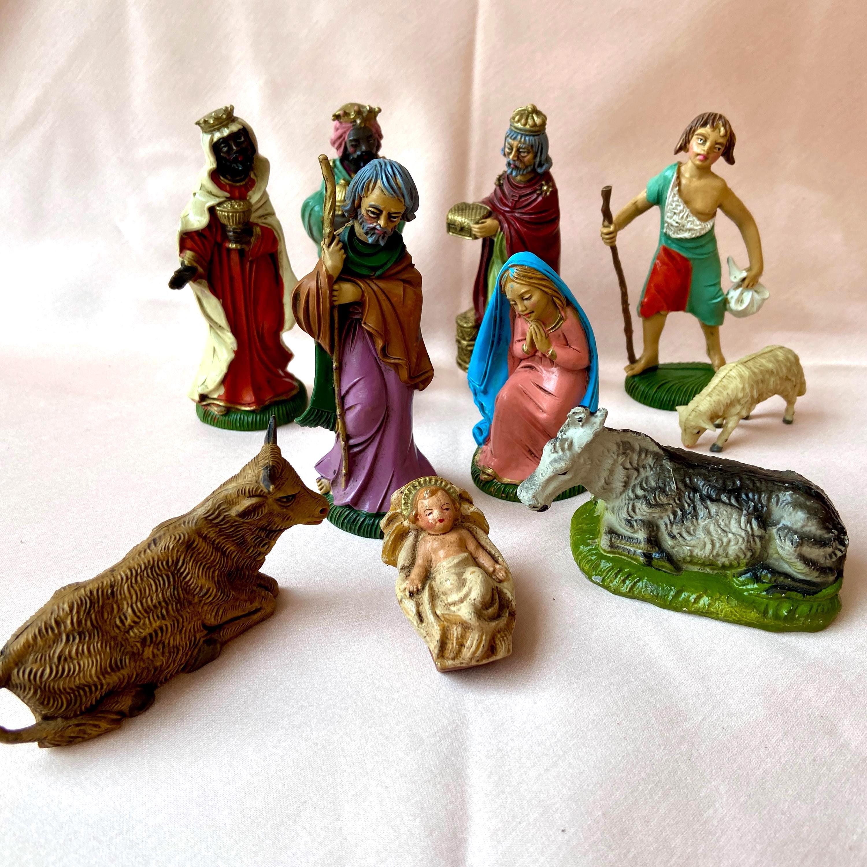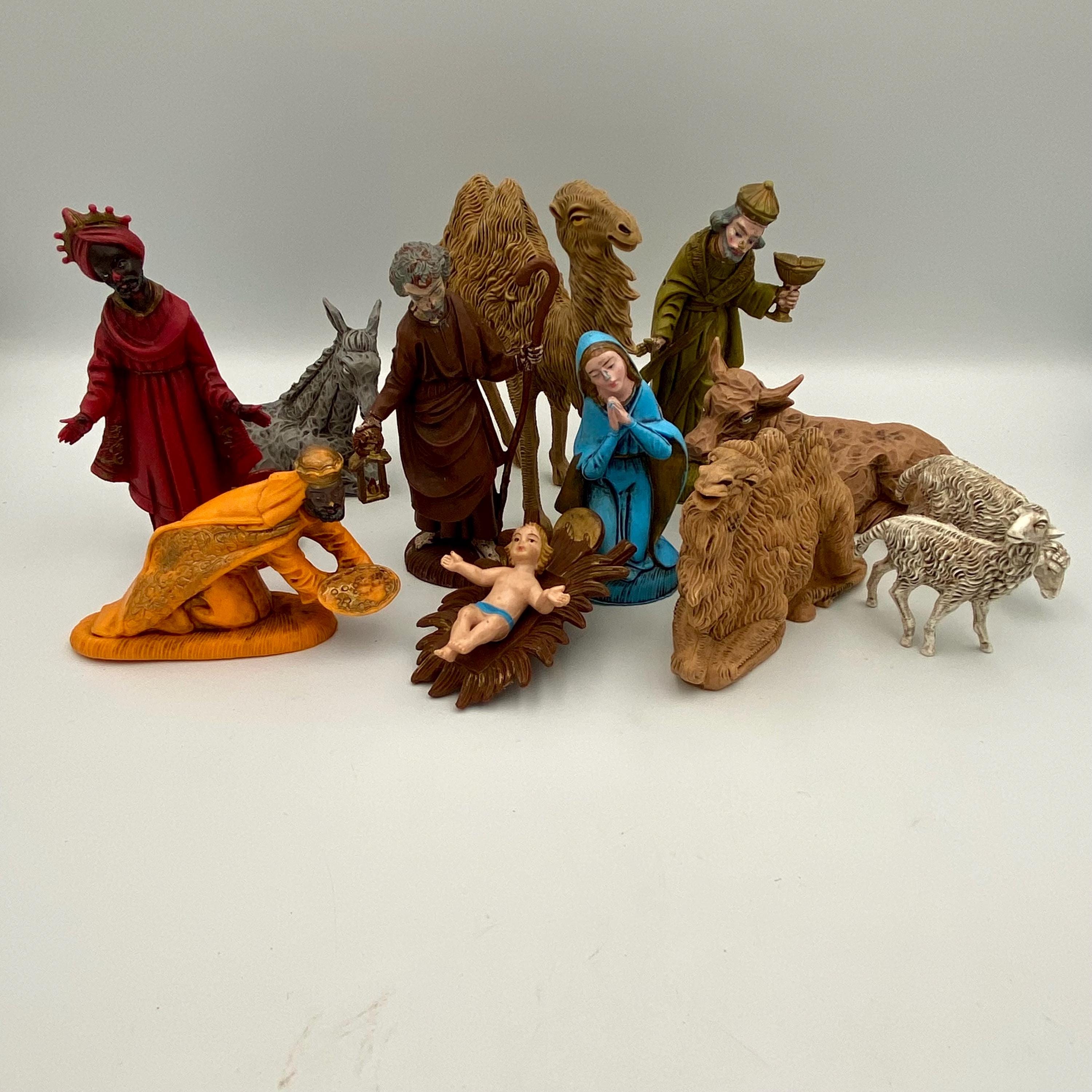 They were developed by Julius Weigelt around 1970., The blanks are made with injection molds using a polyethylene material. After the painting a patina is carefully applied to each figure to create a nostalgic charme. The articles are carefully packed. Peint à la main en Allemagne Creche Noel Blanche MAROLIN Nativity Set, 12 Pcs. (Plastic Material), To 3.5 In. Figures Creche De Noel Blanche Plastik - Krippenfigur Hirte fütternd (sitzend) zu 12cm, Kunststoff Fabriqué vintage au vrai moules , Fabriqué en Allemagne