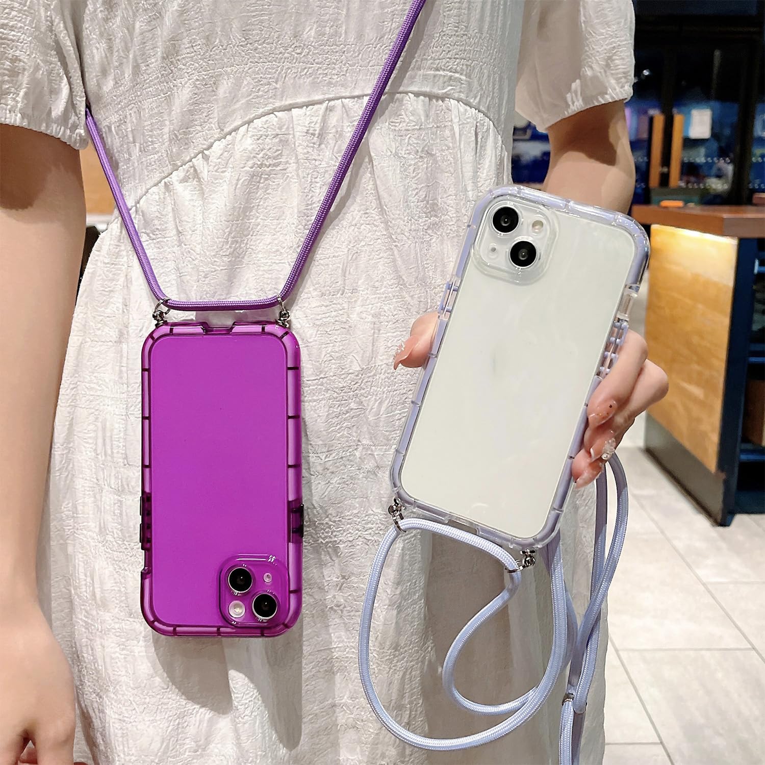 COBATREE Étui à bandoulière pour iPhone 14 Pro Max, lanière de protection avec longueur réglable, cordon antichoc, mains libres, coque transparente pour iPhone 14 Pro Max - Violet Emlivi Coque de protection pour iPhone 14 Pro Max - Transparent Chaque coque iPhone 14 Pro Max avec cordon est conçue pour apporter une touche unique à votre look, faisant de votre iPhone un élément central de votre tenue COBATREE ZhengQian Étui à Bandoulière Pour IPhone 14, Chaîne Les découpes sont parfaitement conçues pour garantir un accès facile à tous les boutons, adaptées aux découpes telles que les haut-parleurs, les appareils photo, le chargement, le volume et d'autres ports, sans retirer la coque. COBATREE Coque à bandoulière pour iPhone 14 Pro, lanière de protection avec longueur réglable, cordon antichoc, mains libres, coque de téléphone en silicone... ✔Protection maximale : la sangle tour de cou pour iPhone 14 Pro Max avec coussins d'air offre une bonne résistance aux chocs, aux chutes, aux rayures, à l'usure et aux chocs. ✔ Découpes précises : lanière en TPU et coque en polycarbonate parfaitement adaptée à votre iPhone 14 Pro Max. ✔ Cordon robuste et réglable : le cordon est amovible et réglable par le régulateur de taille et peut être porté à la fois court ou long, comme lanière de collier ou comme ceinture d'épaule à vos côtés pour le bandoulière, le côté ou le devant, libère vos mains dans un moment chargé. Ne chechez plus votre Iphone 14 Pro Plus grâce à cette coque avec lanière / bandoulière