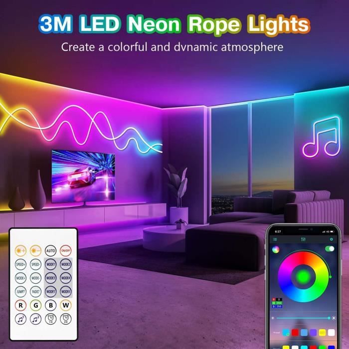 Neon Ruban LED 3m, RGBIC Bande LED Avec Contrôle WiFi APP