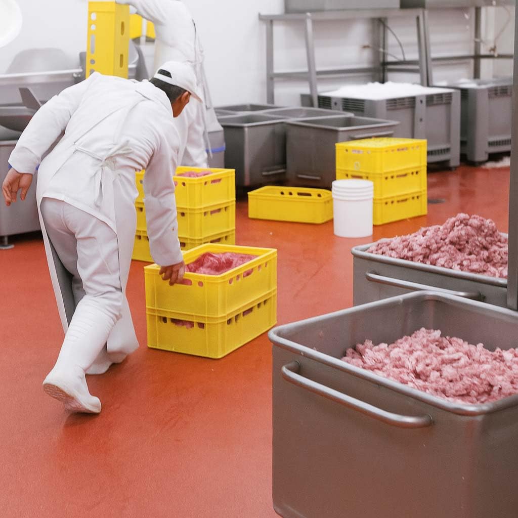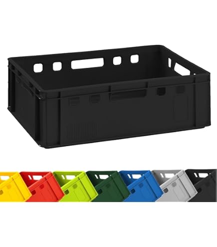 La couleur noire assure une bonne visibilité au quotidien en entrepôt et est utile pour le tri ou le marquage des couleurs de différents produits. Le matériau de qualité alimentaire garantit un contact sûr avec les aliments frais – testé, sûr et fiable dans n'importe quelle chaîne du froid. Ici, nous attachons une grande importance à la finition soignée et aux matériaux de qualité supérieure pour produire des caisses de rangement durables et pratiques pour de nombreuses utilisations. Les clients font confiance à nos caisses qui ne se cassent pas et ne se déforment pas même en cas d'utilisation intensive. BURI met l'accent sur la fabrication de qualité supérieure. Fabriquée en Allemagne et conforme à la norme DIN 55423, la caisse offre la plus haute qualité pour les applications professionnelles – de la boucherie à la grande cuisine en passant par la logistique industrielle. La robuste Eurobox convient non seulement pour les produits de viande, mais aussi comme solution de rangement pour les ateliers, les garde-manger ou les services de livraison. Caisse carton format A3 simple épaisseur Un coup d'œil dans les coulisses Nos caisses à viande BURI sont fabriquées dans une salle de production moderne en Allemagne. De nombreux commentaires positifs de nos clients montrent qu'ils sont satisfaits de la qualité et de la fiabilité de nos produits. Caisse américaine - Noir - 40 x 40 cm - Caisses américaines - Cadres... Technologie de fabrication moderne Caisse à Viande BURI E2 Noire | 60x40x20 Cm | Alimentaire Et Les caisses sont fabriquées en Allemagne BURI – La qualité qui établit des normes Idéal pour les chambres froides, la restauration ou un usage domestique. Empilable avec d'autres caisses E2 - Permet d'économiser de l'espace lors du stockage et du transport. Une caisse en plastique polyvalente pour les professionnels et les particuliers – durable, stable, empilable et facile à nettoyer. La caisse à viande BURI E2 de 60 x 40 x 20 cm convainc par sa finition robuste en polyéthylène haute densité résistant aux chocs – Convient pour un usage alimentaire, hygiénique et idéal pour la viande, les aliments ou les produits en stock de toutes sortes. Idéal pour les systèmes logistiques automatisés en entrepôt, production ou commerce. Nos caisses à viande sont au format standardisé E2 (60 x 40 x 20 cm) et constituent la solution idéale pour les applications professionnelles dans la transformation, le stockage ou le transport des aliments. BURI Lot De 5 Boîtes De Rangement, Caisses à Viande E2 - 60 X 40 X 20 Cm - Qualité Alimentaire, Robustes, Empilables, Universelles - Fabriquées En Allemagne - Noir La caisse passe au lave-vaisselle et dispose d'une surface intérieure lisse qui permet un nettoyage particulièrement facile - Parfait pour les zones sensibles et hygiéniques. Dans le hall de production