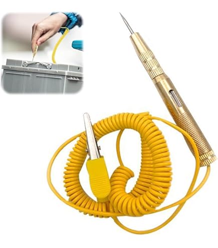 Connectez la pince à la terre, puis prenez la sonde pour tester le circuit. Caractéristiques: - La sonde tranchante en acier perce facilement l'isolant du fil pour vérifier les circuits. [Fil à ressort long et stable]: Le fil à ressort long peut s'étirer jusqu'à environ 1 mètre et le fil est épais de sorte que le fil ne brûle pas lorsque la température de la pièce augmente [Matériau AS et acier au carbone de qualité supérieure]: la poignée de ce testeur de circuit électrique est faite d'un matériau AS de haute qualité, ne se cassera pas facilement, sera anti-électricité et sûre à utiliser; La sonde est en acier au carbone chromé durci et trempé, antirouille et très tranchant Description: Ce stylo sonde est idéal pour vérifier les circuits, les fusibles, les interrupteurs et le câblage des automobiles, remorques, bateaux, motos et autres systèmes basse tension. Veuillez prendre le vrai comme standard. Le testeur de circuit pour fil automobile utilise une sonde en acier tranchant qui perce facilement lisolation du fil pour inspecter le circuit, ce qui... [Témoin lumineux de réponse rapide]: Ce stylo testeur de circuit de camion est équipé d'un voyant sensible, il répondra rapidement une fois que le stylo testeur de circuit de camion aura détecté l'électricité; Si le voyant est allumé, il y a de l'électricité [Sonde en acier tranchant et facile à utiliser]: elle est construite avec une fine sonde en acier inoxydable et perce facilement l'isolant du fil pour vérifier les circuits, même dans les zones difficiles d'accès Merci pour votre compréhension., 2., Les moniteurs ne sont pas calibrés de la même manière, la couleur de l'élément affichée sur les photos peut être légèrement différente de l'objet réel. [Volt entre 6 et 24 V]: la plage de test de ce stylo de sonde de test de circuit de tension de véhicule est de 6 V à 24 V, la plage de tension la plus courante des véhicules sur le marché; Il est idéal pour les régulateurs de tension, les fusibles, les interrupteurs, les fils cassés, les mécaniciens, les électriciens, etc. Circuit électrique testeur de continuité - Circuit de fil électrique Circuit 24 Testeur De Circuit électrique , Voiture 6V 12V 24V CC Testeur De Circuit De Tension De Camion De Voiture Test De Voiture Voltmet Longue Ampoule De Stylo Sonde 90636996 Testeur Electrique Voiture - La poignée est en plastique AS et la sonde en acier au carbone trempé trempé est chromée.