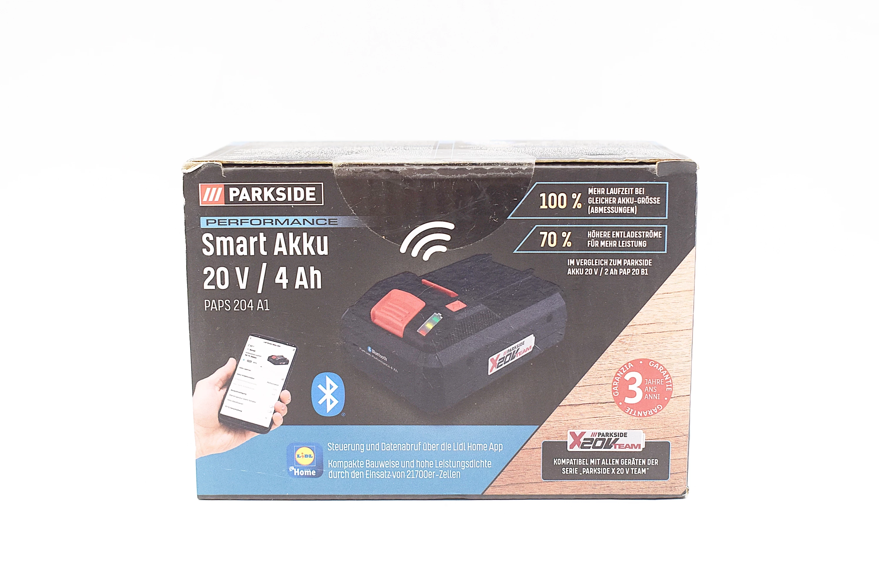 Parkside Performance® Batterie intelligente PAPS 204 A1 20 V 4 Ah 20 V Smart Akku »PAPS 204 A1«, 4 Ah, über PARKSIDE App Caractéristiques Batterie lithium-ion puissante aux nouvelles dimensions grâce à la technologie de batterie intelligente et à l’utilisation de 21 700 cellules Consulter les données de la batterie et configurer les paramètres de performance via Bluetooth® en utilisant l’application Lidl Home Modes réglables : Performance, Balanced, Eco et Expert Surveillance de la batterie – consultation des données Smart Battery Vs Normal Batteries Parkside Performance 20v 4ah PAPS 204 A1 - Bricolage Batterie Intelligente Parkside 204v Dimensions : environ 12,3 x 5,25 x 8,4 cm , Poids : environ 601 gr PARKSIDE PERFORMANCE® Batterie Smart PAPS 204 A1, 4 Ah... Idéal en combinaison avec le PAR intelligent Kside Chargeur de batterie 20 V/12 A « PLGS 2012 A1 » Données techniques : type : lithium-ion, tension nominale : 20 V, capacité : 4 Ah, indicateur de niveau de charge : 3 niveaux, surveillance de la batterie : via l'application Lidl Home Par rapport à la batterie Parkside 20 V/2 Ah « PAP 20 B1 » : 100 % d'autonomie en plus avec la même taille de batterie (dimensions), flux de décharge 70 % plus élevés pour plus de puissance, de contrôle et de récupération de données via l'application Lidl Home Caractéristiques Batterie lithium-ion puissante aux nouvelles dimensions grâce à la technologie de batterie intelligente et à l’utilisation de 21 700 cellules Consulter les données de la batterie et configurer les paramètres de performance via Bluetooth® en utilisant l’application Lidl Home Modes réglables : Performance, Balanced, Eco et Expert Surveillance de la batterie – consultation des données […]